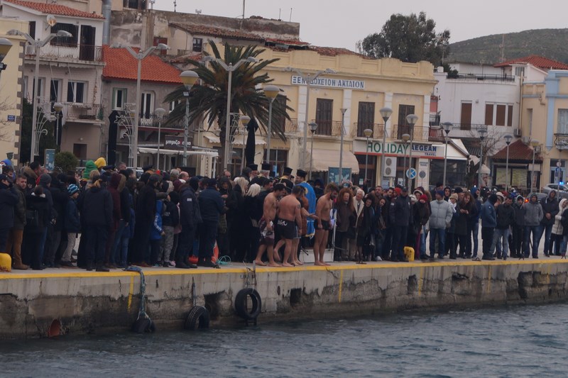 Ακολούθησε η ρίψης του τίμιου σταυρού στο λιμάνι της Μύρινας .