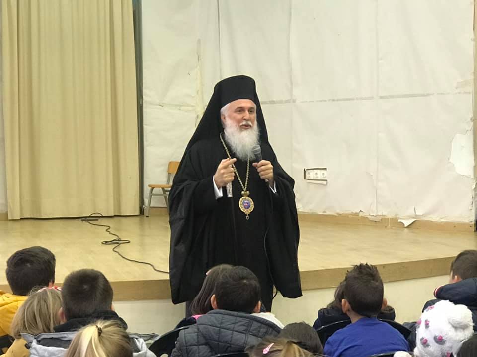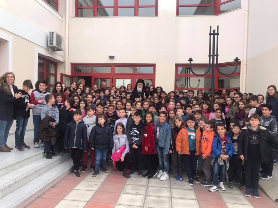 Όπως αναφέρεται σε σχετική ανακοίνωση του Συλλόγου Γονέων και Κηδεμόνων του σχολείου: «Τα παιδιά τον υποδέχθηκαν με αγάπη και ο προσιτός του λόγος μίλησε στις καρδιές τους. Μεγάλη τιμή και χαρά για τους εκπαιδευτικούς, τους μαθητές και το Σύλλογο Γονέων και Κηδεμόνων του Σχολείου μας ήταν η ευλογία του για το νέο έτος. Ακολούθησε κοπή της πίτας και το φλουρί κέρδισε το σχολείο».