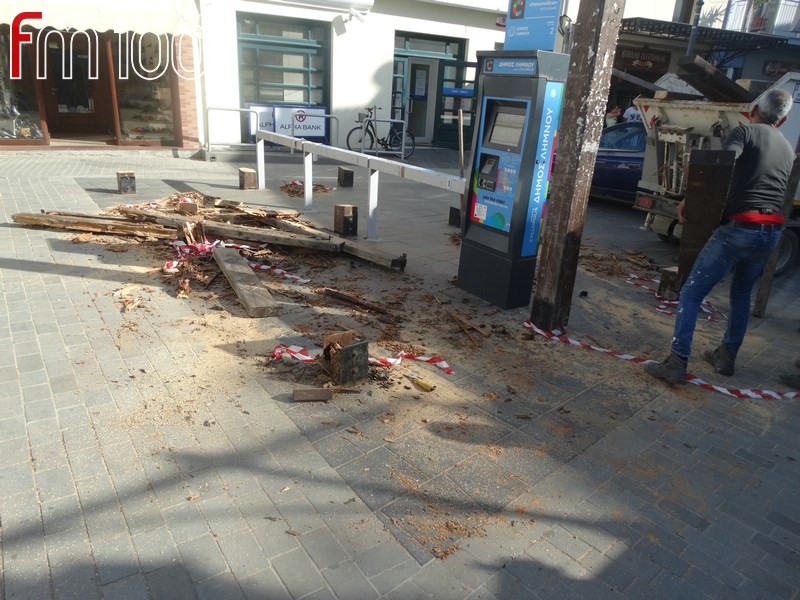 Μέσα στην ημέρα αναμένεται να αφαιρεθούν και οι σιδερένιες βάσεις και ως φαίνεται δεν υπάρχει πρόθεση για αντικατάσταση με άλλη κατασκευή.