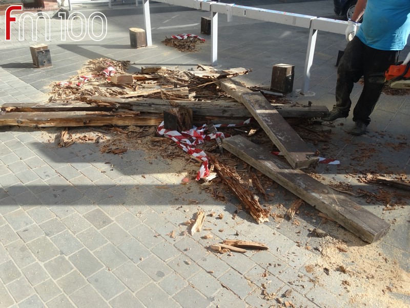 Όπως πληροφορούμαστε, πολλές από τις κεντρικές κολόνες αλλά και το πάνω μέρος της ξύλινης κατασκευής, είχαν σαπίσει, με αποτέλεσμα να θεωρείται επίφοβη για ατύχημα.