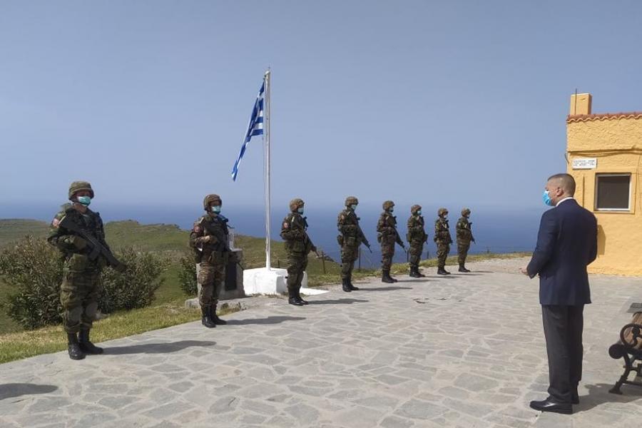 Ο υφυπουργός ξεκίνησε τον κύκλο των επισκέψεών του από τη Λήμνο. Παρευρέθηκε διαδοχικά στις έδρες των 130 Σμηναρχίας Μάχης (130 ΣΜ) και 88 Στρατιωτικής Διοίκησης (88 ΣΔΙ), όπου πραγματοποίησε συσκέψεις με τους Διοικητές των Σχηματισμών, καθώς και με τον Λιμενάρχη και τον Διοικητή του Ναυτικού Κλιμακίου της νήσου. Στη συνέχεια, επισκέφτηκε τα Επιτηρητικά Φυλάκια (ΕΦ) «ΠΛΑΚΑΣ» και «ΦΙΣΙΝΗΣ».