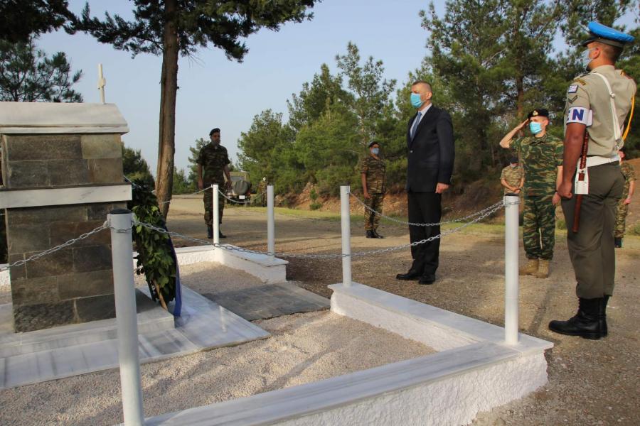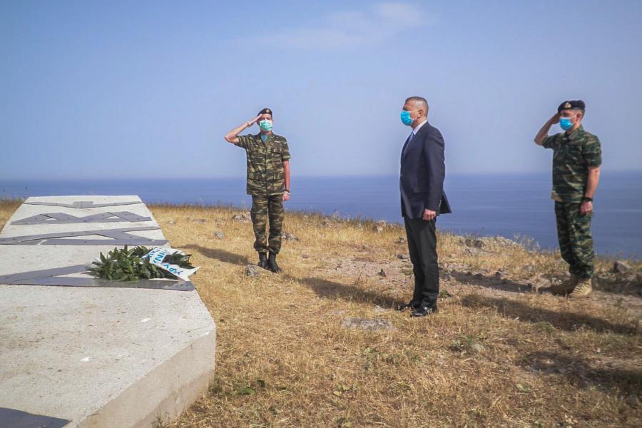 Ακολούθως, μετέβη στον Άγιο Ευστράτιο, όπου πραγματοποίησε επίσκεψη στο ΕΦ «ΑΓΙΟΣ ΕΥΣΤΡΑΤΙΟΣ». Στο πλαίσιο της επίσκεψής του, είχε συνάντηση με τη Δήμαρχο Αγίου Ευστρατίου κ. Μαρία Κακαλή και παρέδωσε ιατροφαρμακευτικό υλικό (προστατευτικές μάσκες και αντισηπτικά) που κατασκευάζουν οι Ένοπλες Δυνάμεις. Στη συνέχεια, επισκέφτηκε το Μουσείο Δημοκρατίας και ακολούθως επισκέφθηκε και κατέθεσε στεφάνι στο μνημείο του Υποσμηναγού (Ι) Νικολάου Σαλμά, που έπεσε κατά την εκτέλεση του καθήκοντος, στις 18 Ιουνίου 1992.