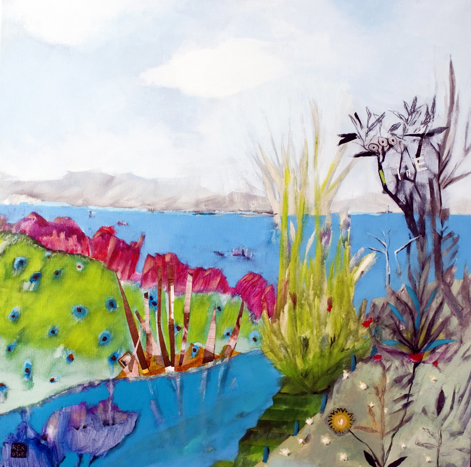 Η ελεύθερη γραφή και η ουσιαστική περιγραφική δύναμη του σχεδίου, η χρωματική ένταση και το παιχνίδι της φωτεινότητας, η ρυθμική οργάνωση και η πλαστικότητα των σχημάτων χαρακτηρίζουν τις συνθέσεις του Χρήστου Κεχαγιόγλου, ο οποίος έρχεται να αποκαλύψει εκείνο που υπάρχει πίσω από το ορατό, που πηγάζει από ψυχικές και συναισθηματικές καταστάσεις, που βιώνεται διαισθητικά πέρα από τη φαινομενικότητα των πραγμάτων: «Ο κήπος μέσα στον κήπο που κρύβεται μέσα μας».