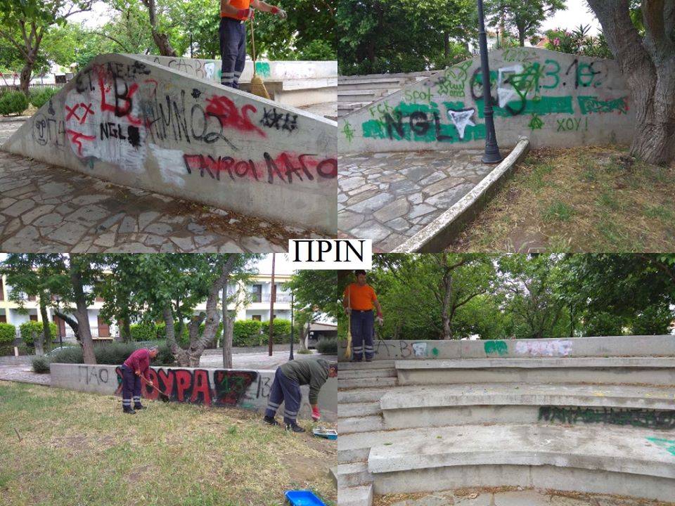 Όπως αναφέρεται σε σχετική ανακοίνωση του Δήμου: «Αφαιρέθηκαν τα αντιαισθητικά γκράφιτι και καθαρίστηκαν οι χώροι του πάρκου. Οι εργασίες στο σημείο θα συνεχιστούν και τις επόμενες ημέρες».