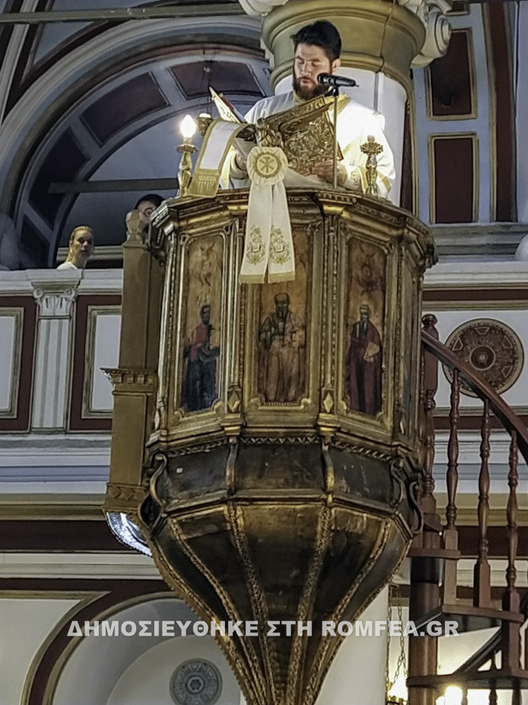 Στην ακολουθία του Εσπερινού κήρυξε ο Αρχιμ. Χρυσόστομος Χρυσόπουλος, κληρικός της Ιεράς Αρχιεπισκοπής Αθηνών.