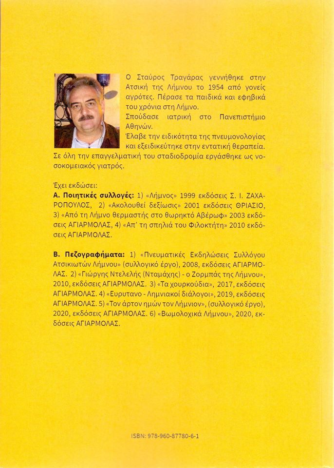 Ο Τραγάρας, το έχω ξαναγράψει, διαθέτει ένα συγκριτικό πλεονέκτημα σε σχέση με τους υπόλοιπους λημνιολογούντες (εν οις και ο υποφαινόμενος). Είναι γέννημα θρέμμα της λημνίας γης, από την οποία όμως ουδέποτε αποκόπηκε πνευματικά.