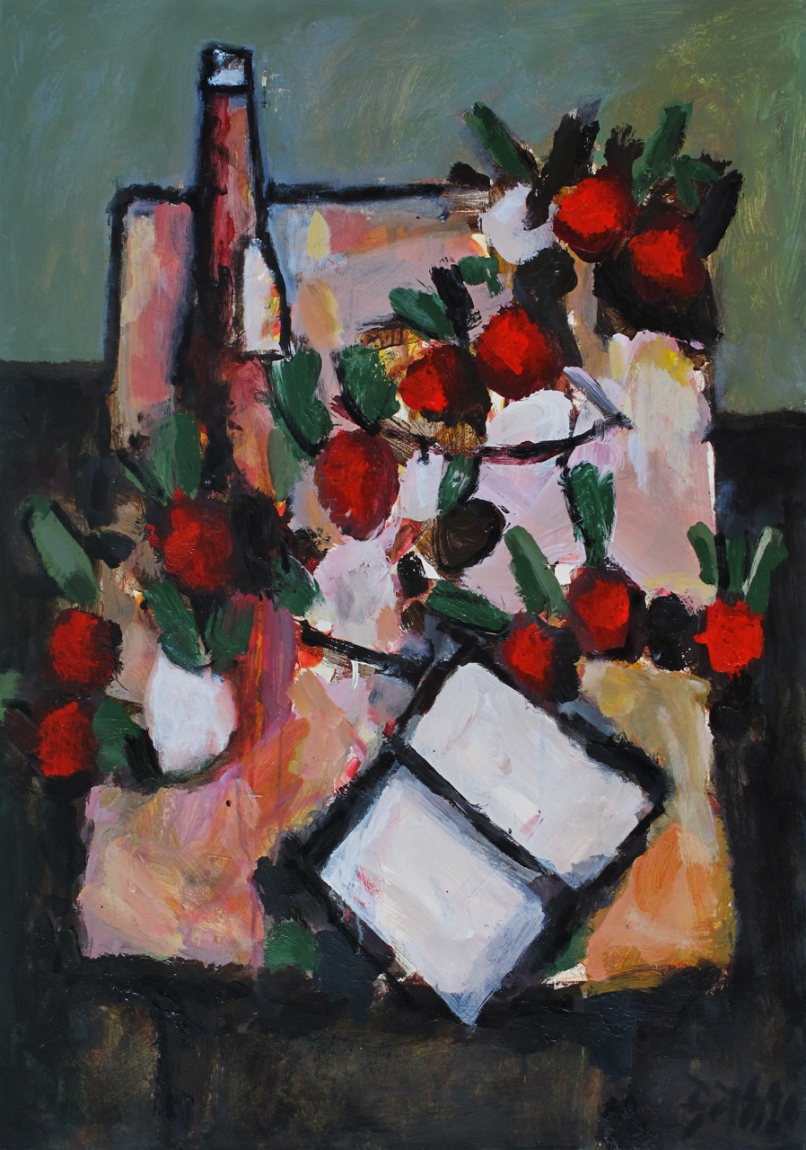 Οι σχηματοποιήσεις, η επιπεδότητα, τα δυνατά χρώματα και τα τονισμένα περιγράμματα χαρακτηρίζουν τη νέα ενότητα δουλειάς του Σώτου Ζαχαριάδη. Τραπέζια με νεκρές φύσεις κυριαρχούν σε ελλειπτικά εσωτερικά με διάχυτο το αίσθημα της μοναξιάς, της απομόνωσης ―το τμήμα ενός παραθύρου που ανοίγεται στη θάλασσα εντείνει αυτό το αίσθημα. Εμφανής είναι η προσπάθεια του ζωγράφου να εντάξει τη γραφή στην επιφάνεια των έργων του προσδίδοντας σ' αυτό, μερικές φορές, συμβολική-θρησκευτική διάσταση. Και ταυτόχρονα, να «αφηγηθεί» μικρές προσωπικές ιστορίες στον απόηχο της ζοφερής εξωτερικής συνθήκης και πραγματικότητας, προτάσσοντας το βιωματικό-εξομολογητικό στοιχείο.