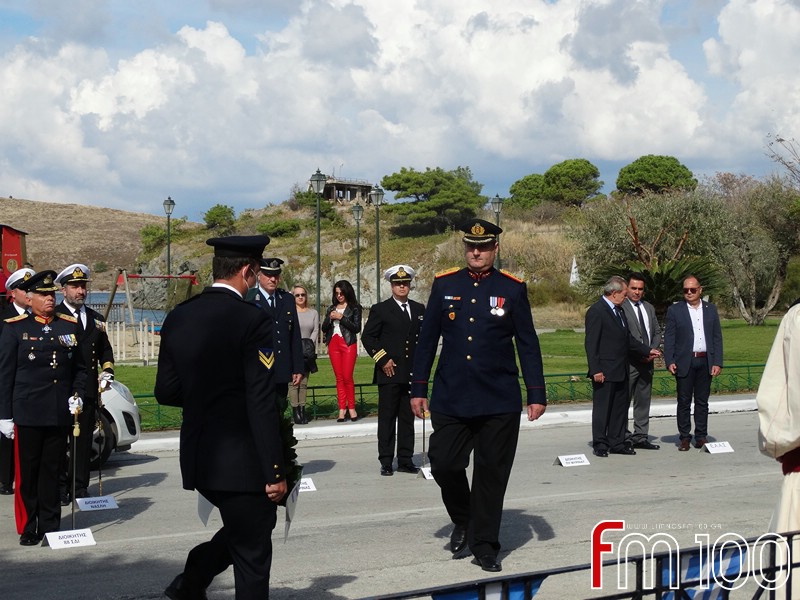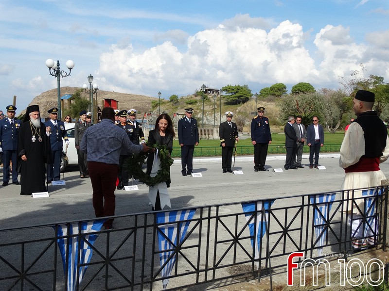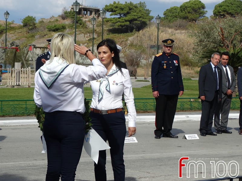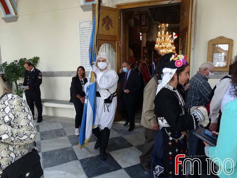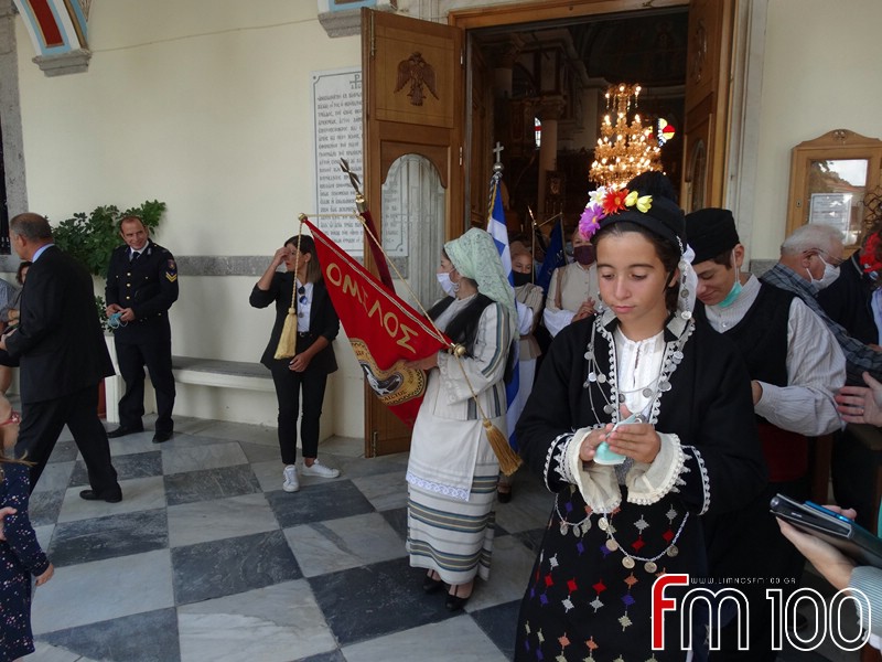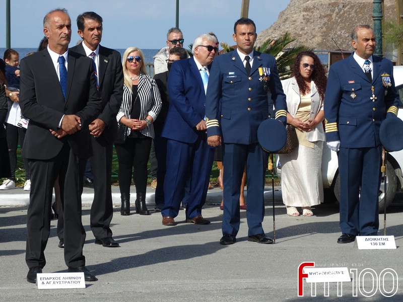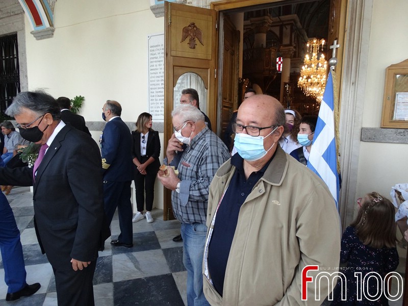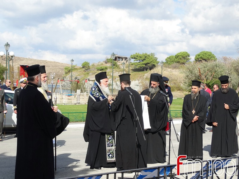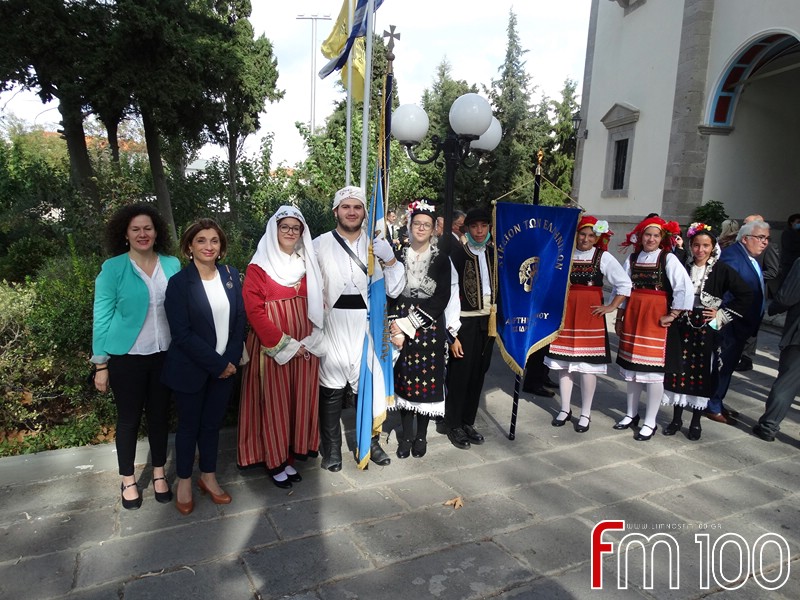 Νωρίτερα είχε προηγηθεί επίσημη δοξολογία στον Μητροπολιτικό Ναό της Αγίας Τριάδος όπου χοροστάτησε ο Σεβασμιώτατος Μητροπολίτης Λήμνου και Αγίου Ευστρατίου κ. Ιερόθεος, συμπαραστατούμενος από τον Ιερό Κλήρο. Τον πανηγυρικό της ημέρας εκφώνησε η κ. Ιωάννα Κοντογιάννη, εκπαιδευτικός του 1ου Δημοτικού Σχολείου Μύρινας.