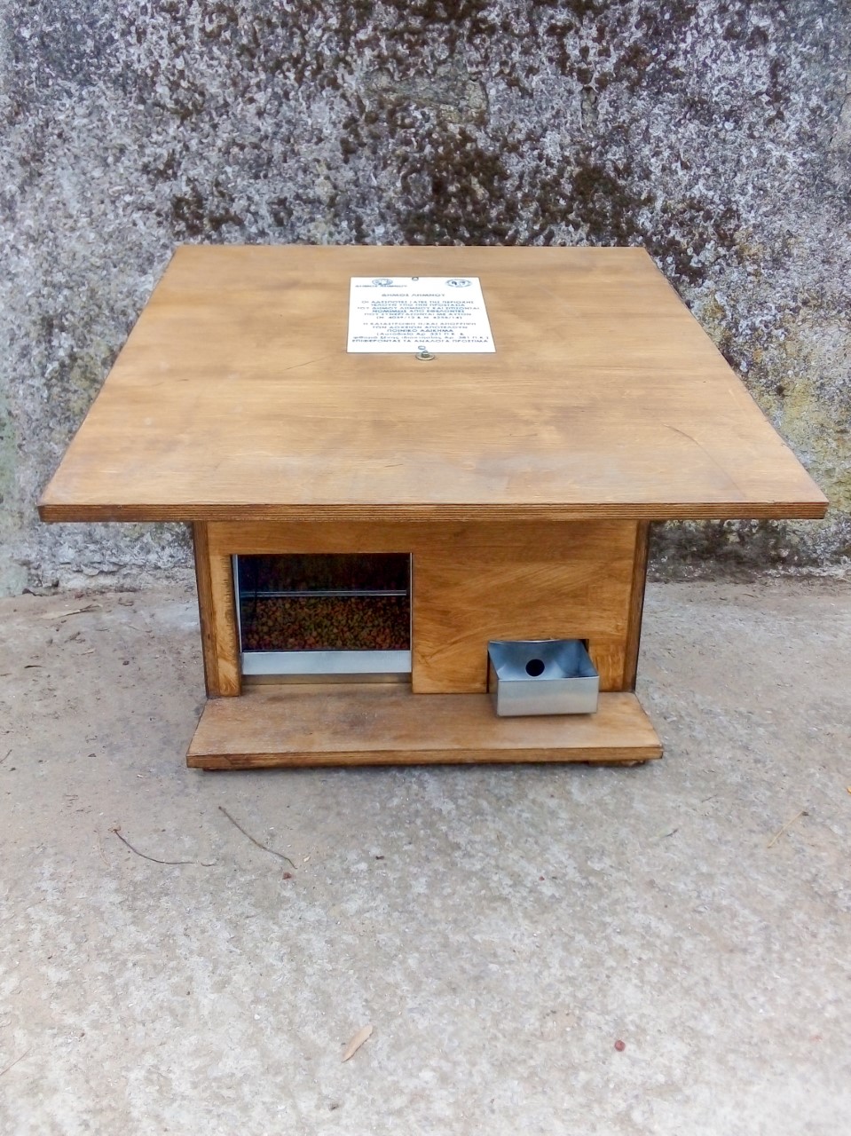 "Ευχαριστούμε από καρδιάς τον τραγουδιστή κ. Στέλιο Ρόκκο ο οποίος ανταποκρίθηκε άμεσα στην πρόταση του Φιλοζωικού Συλλόγου για την δωρεάν κατασκευή 15 ξύλινων προστατευτικών πλαισίων, στα οποία θα περιέχονται τα δοχεία . Μία πράξη που αποτελεί παράδειγμα προς μίμηση και έμπρακτη απόδειξη ευαισθησίας απέναντι στα αδέσποτα ζώα. Το κόστος των υλικών κατασκευής καλύφθηκαν από τον Δήμο.