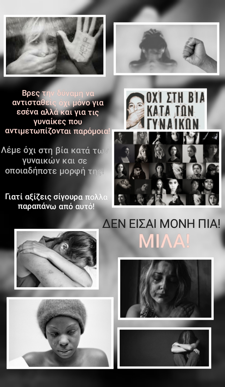 Πιο συγκεκριμένα, η Νικολέττα Δήμου με 2 αφίσες, η Κριστιάνα Σέχου, η Σταυρούλα Μαρία Στενού και ο Αλέξανδρος Λυριστής, ευαισθητοποιούνται σχετικά με το θέμα της εξάλειψης της βίας κατά των γυναικών, με αφορμή τη σημερινή ημέρα, την 25η Νοεμβρίου, Διεθνή Ημέρα εξάλειψης της βίας κατά των γυναικών και δημιουργούν κολάζ ευαισθητοποίησης με σύνθημα το hashtag: #HearMeToo.