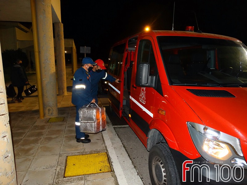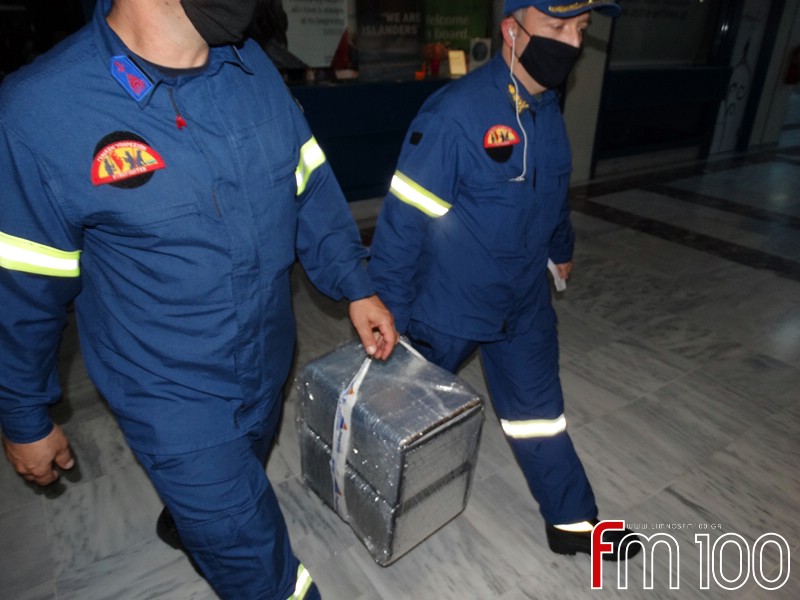 Αμέσως μετά την παραλαβή της ειδικής συσκευασίας οι άνδρες της Πυροσβεστικής Υπηρεσίας αναχώρησαν με προορισμό το Γενικό Νοσοκομείο Κέντρο Υγείας Λήμνου. Εκεί τους περίμενε ο Διοικητής του Νοσοκομείου, ο οποίος όμως δεν επέτρεψε τη δημοσιογραφική κάλυψη της παραλαβής.