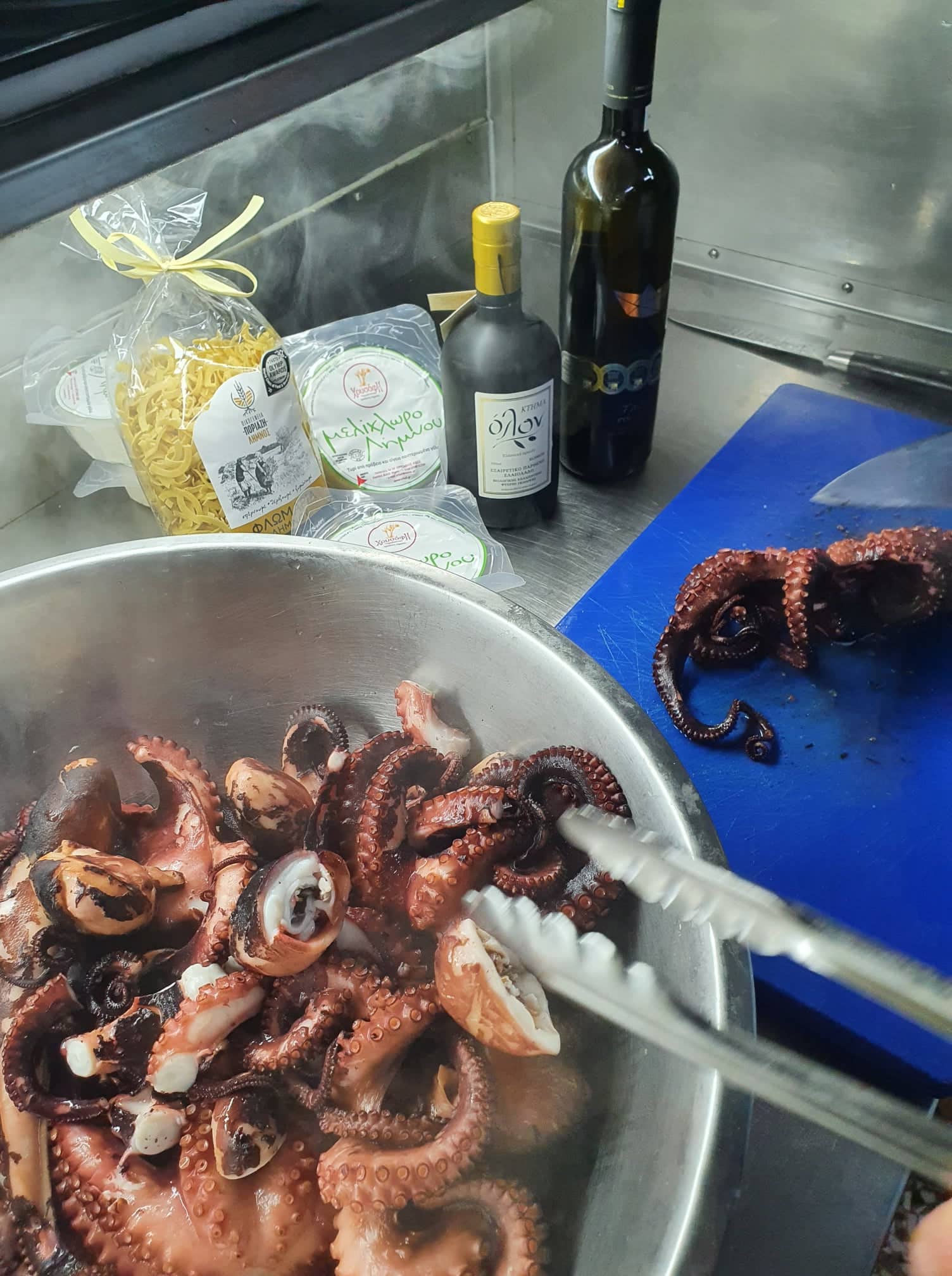Οι παραγωγοί και οι εστιάτορες του Συλλόγου ήρθαν μαζί για να ετοιμάσουν ένα μενού μαγειρεμένο από τη Μαρία Καλιγερή (Ταβέρνα Καλουδίτσα) και τον Γιάννη Τριανταφύλλου (Ταβέρνα Μαν-Τέλλα) με προϊόντα τοπικών παραγωγών την Πέμπτη, 18 Μαρτίου. Το μενού περιελάμβανε φλωμάρι με χταπόδι, άφκο με καβουρμά, τυρόψωμο με καλαθάκι και για επιδόρπιο κρέμες από τα τοπικά τυροκομεία.