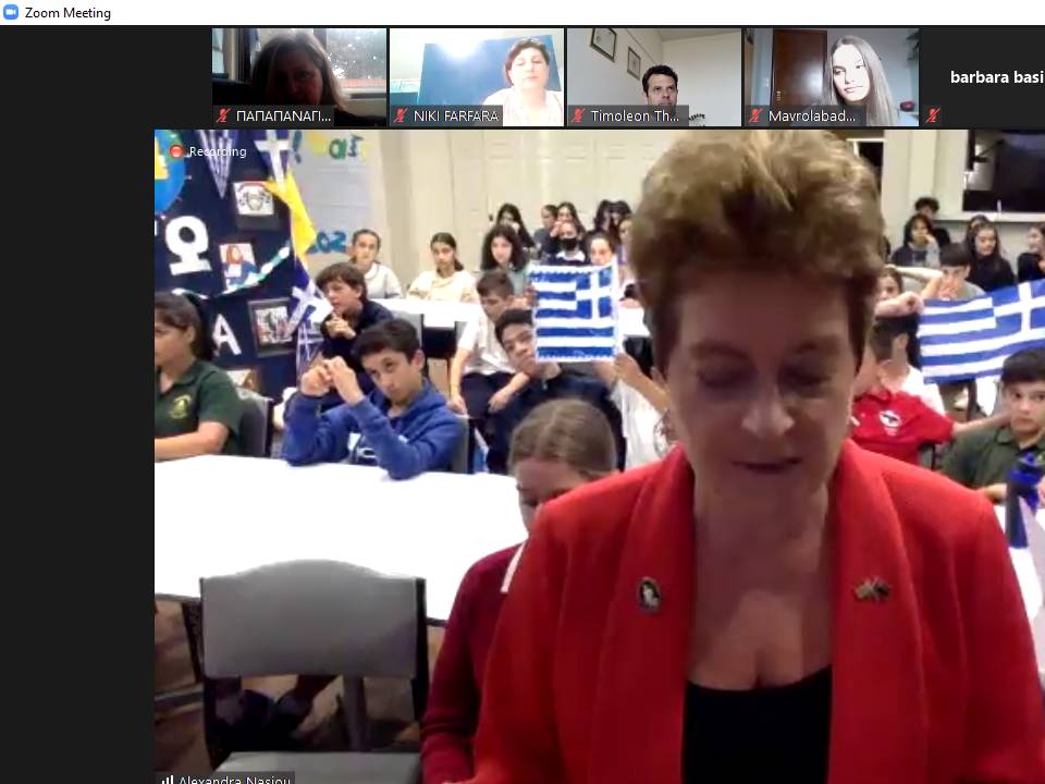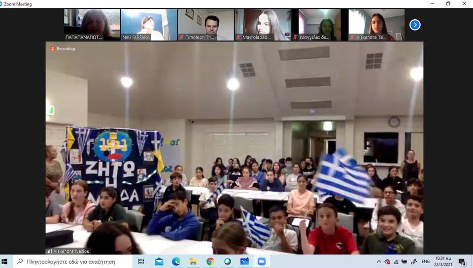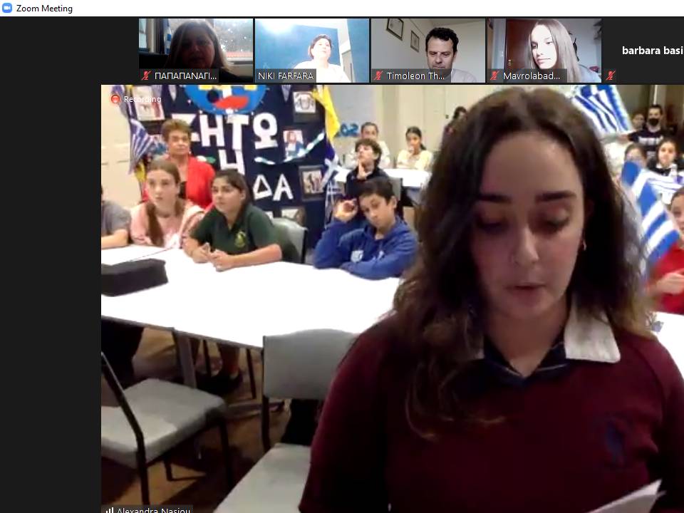 Συγκινητικοί λόγοι από τους μαθητές και των δύο σχολείων, τραγούδια, κουίζ, παρουσιάσεις και η Ελλάδα ζωντανή και αγέρωχη στα χέρια των μικρών μαθητών της Αυστραλίας που δε σταμάτησαν στιγμή να κυματίζουν με ενθουσιασμό την ελληνική σημαία.