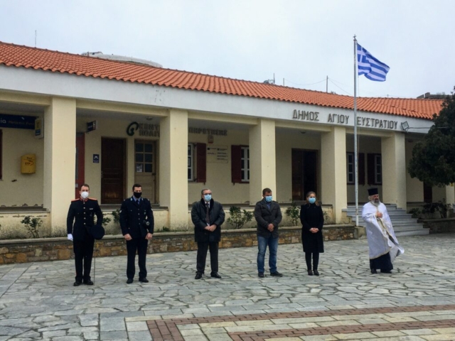 Για τον εορτασμό της ημέρας τελέστηκε επίσημη δοξολογία στον Ι.Ν. Γέννησις του Χριστού. Τον Πανηγυρικό λόγο εκφώνησε η διευθύντρια του Γυμνασίου λυκειακών τάξεων Αγίου Ευστρατίου κυρία Άννα Παπανικολάου.