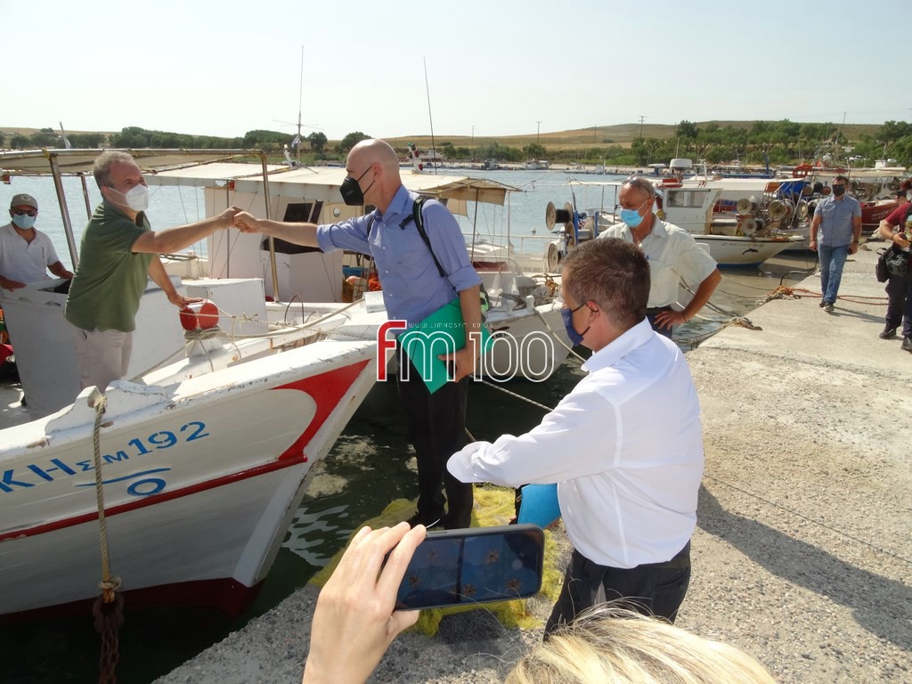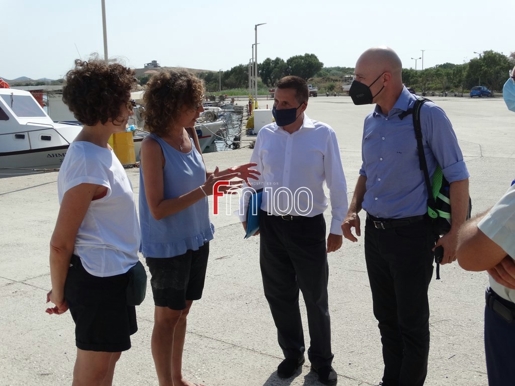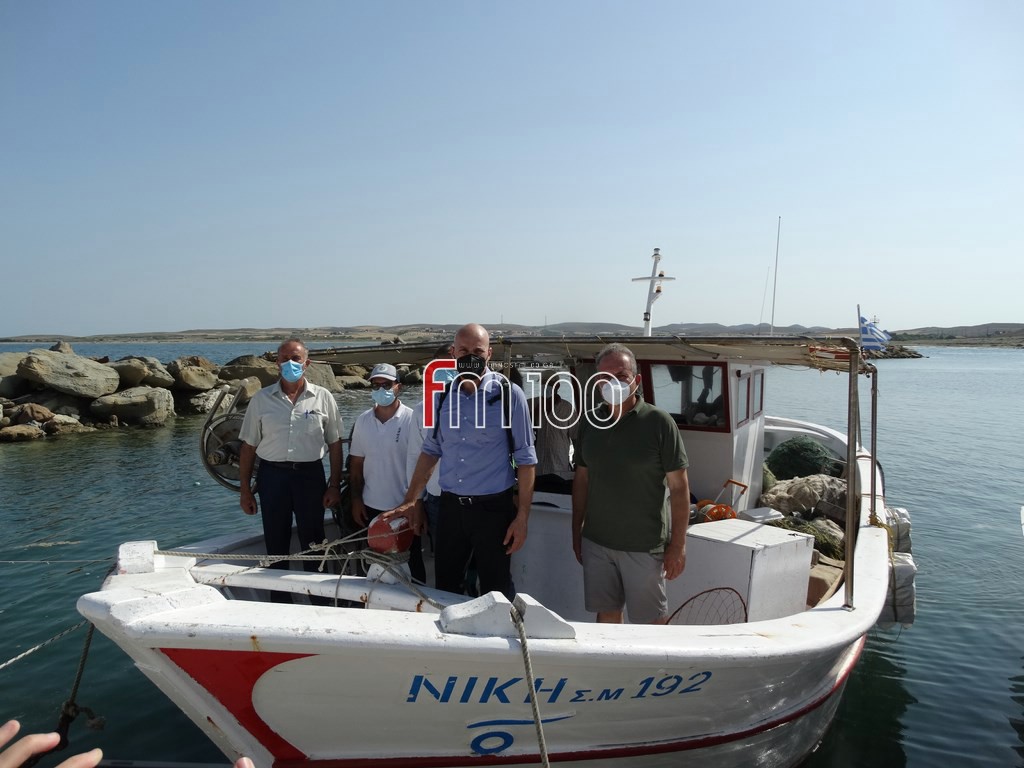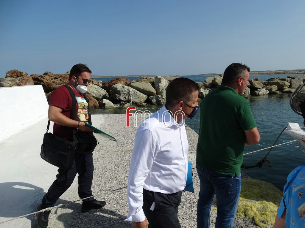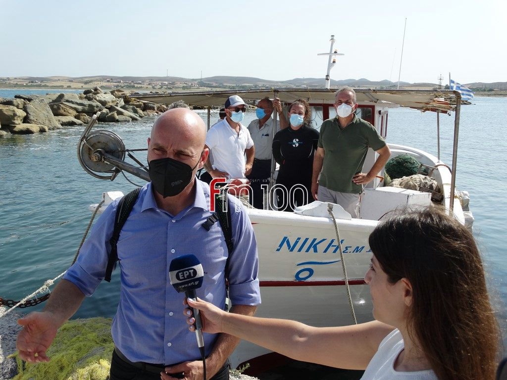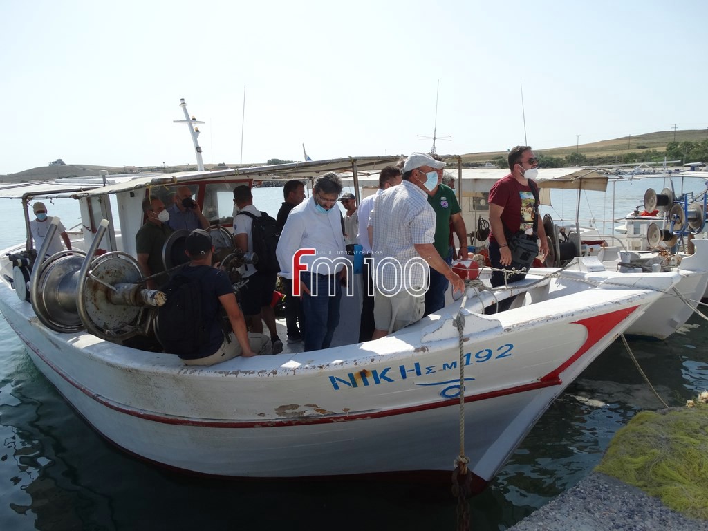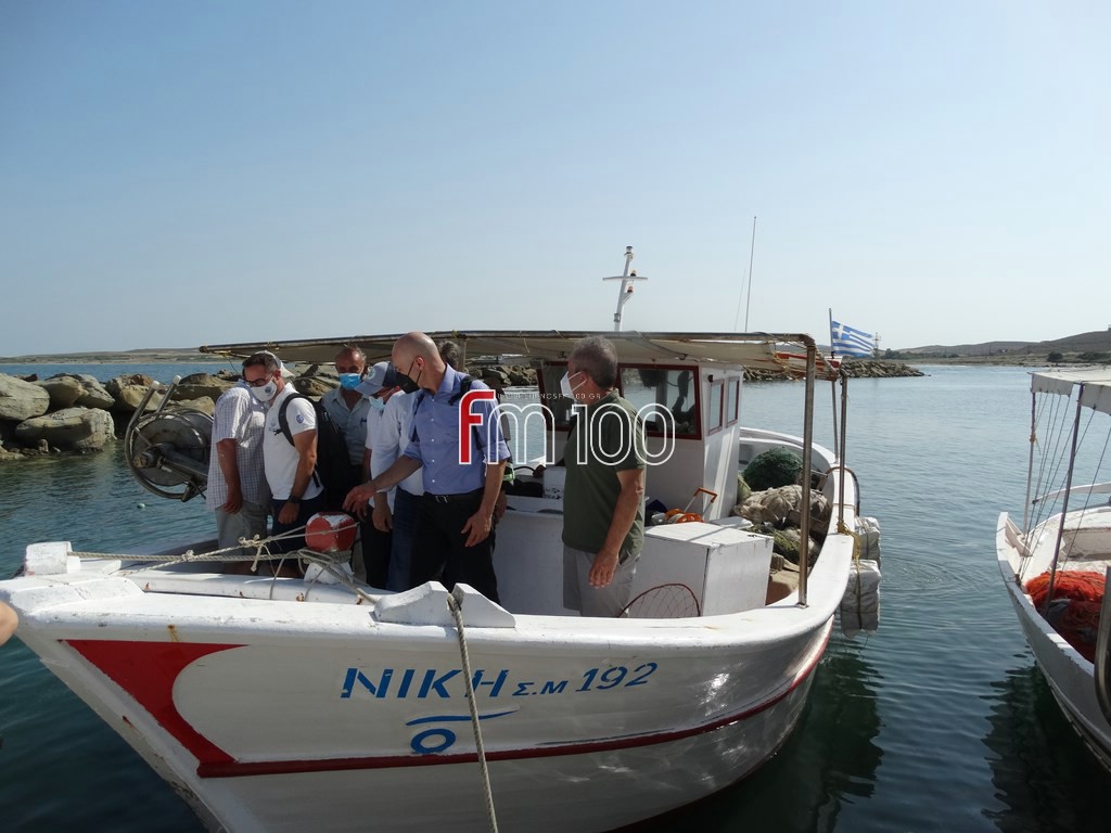 Ο υφυπουργός και ο γενικός γραμματέας μετέβησαν στο λιμάνι της Πλάκας, από όπου απέπλευσαν με αλιευτικό σκάφος για να συντονίσουν τις δειγματοληψίες που πραγματοποιούνται τόσο στην επιφάνεια της θάλασσας όσο και στο λιβάδι Ποσειδωνίας.