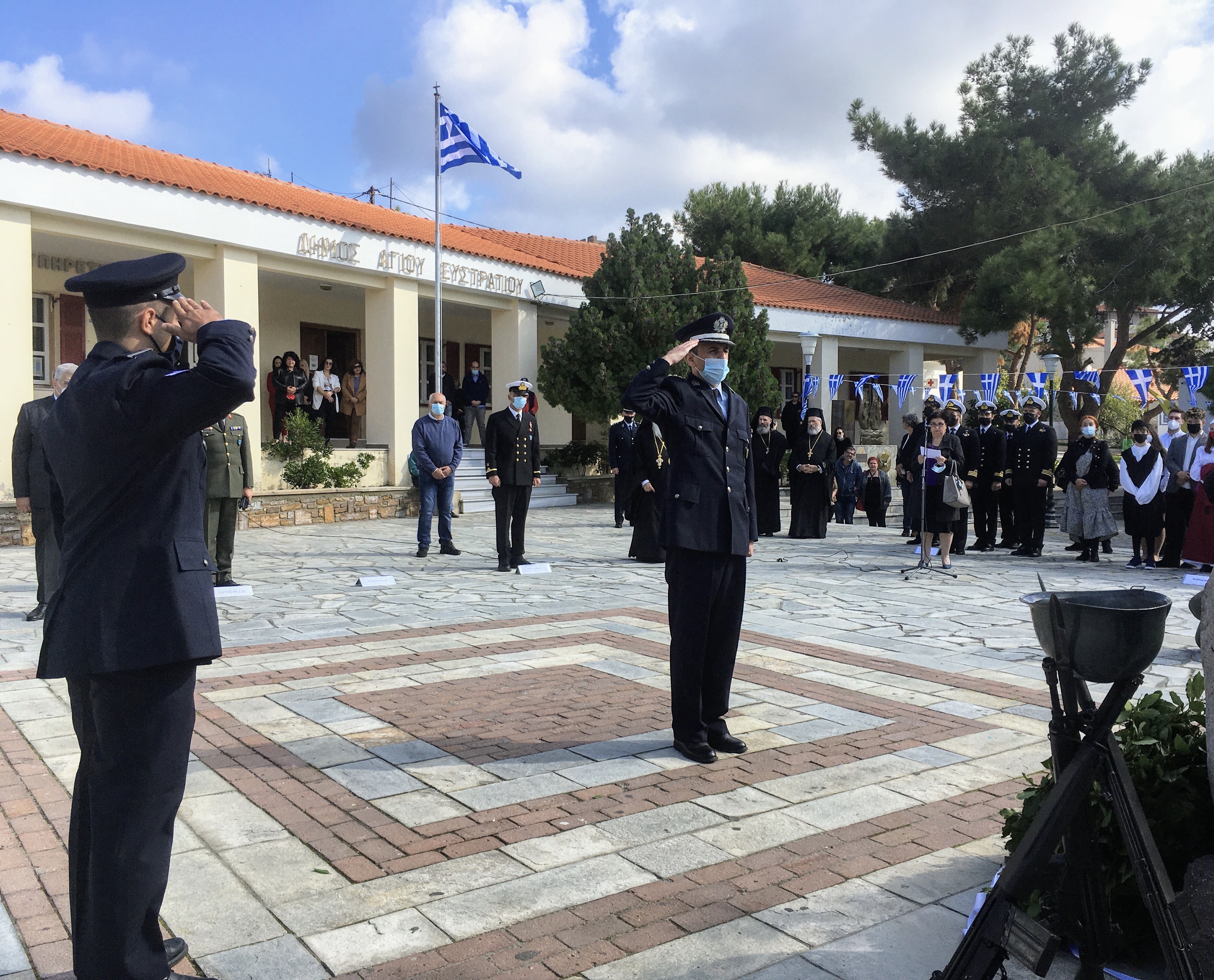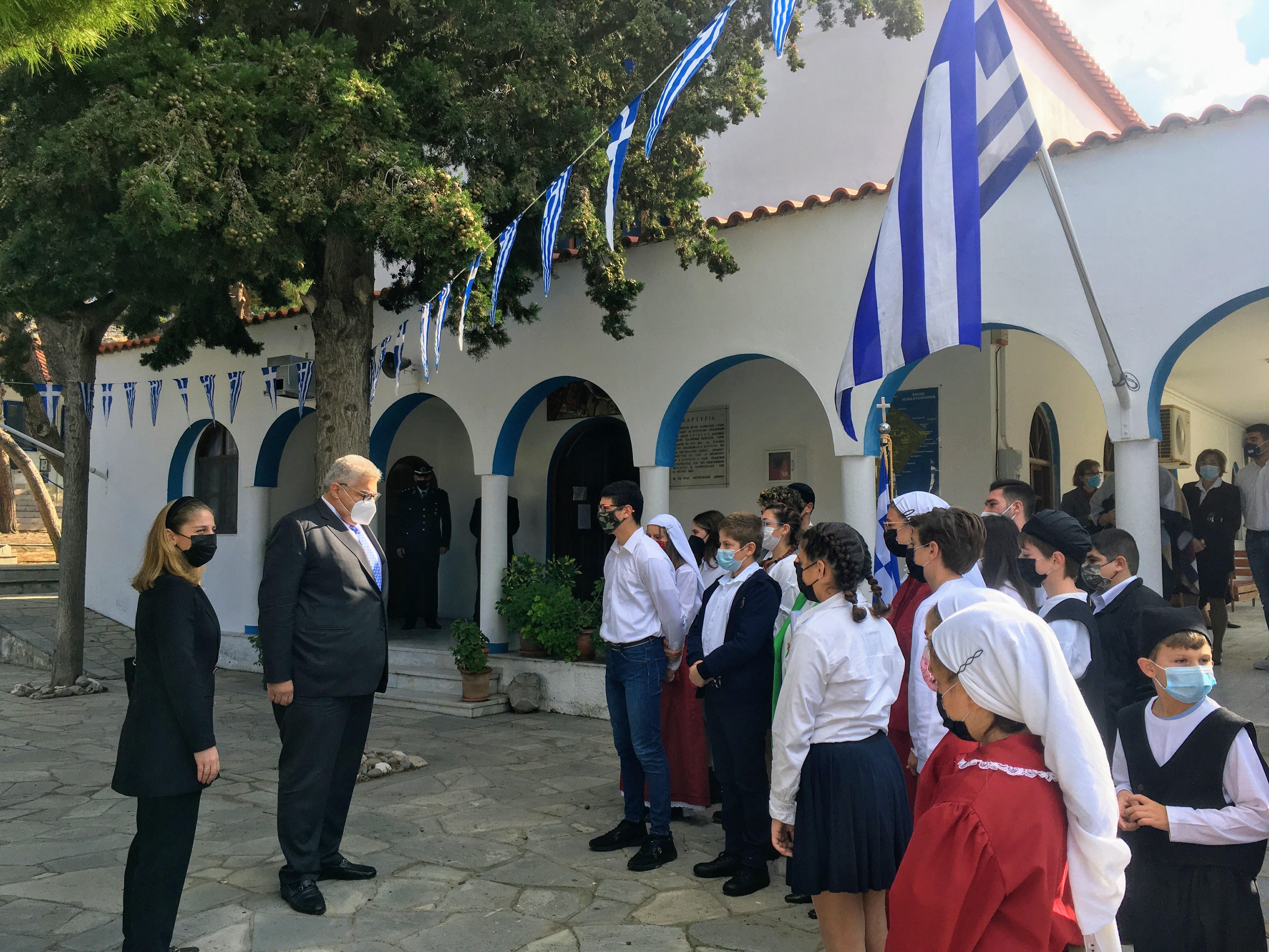 Οι εορταστικές εκδηλώσεις ολοκληρώθηκαν με τη μαθητική παρέλαση των σχολείων Πρωτοβάθμιας και Δευτεροβάθμιας Εκπαίδευσης.