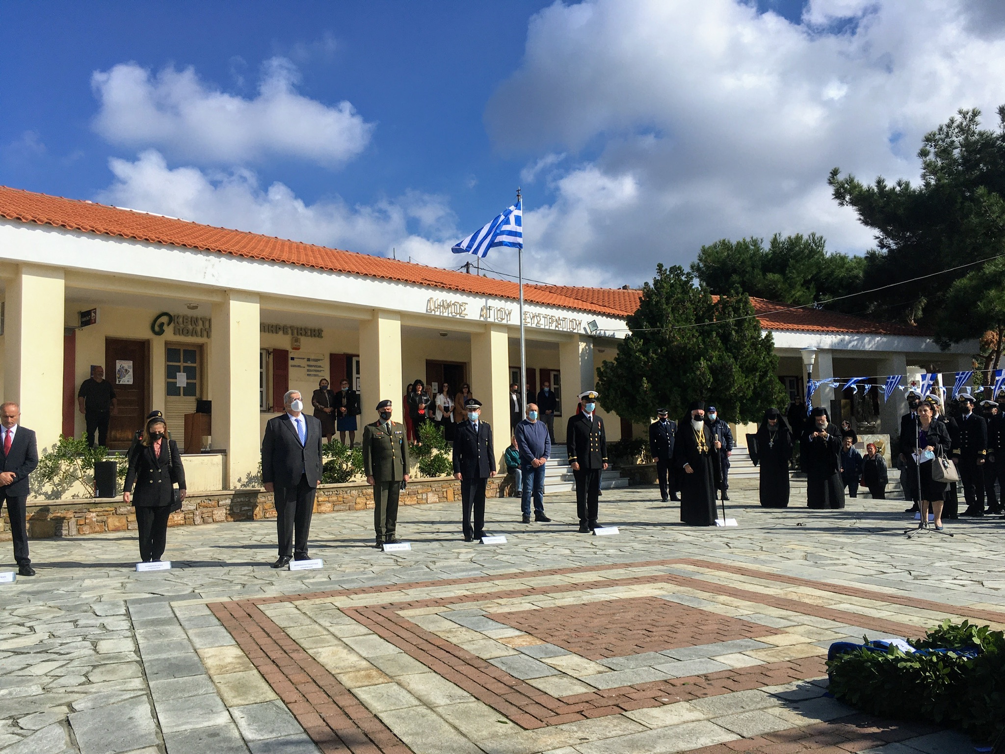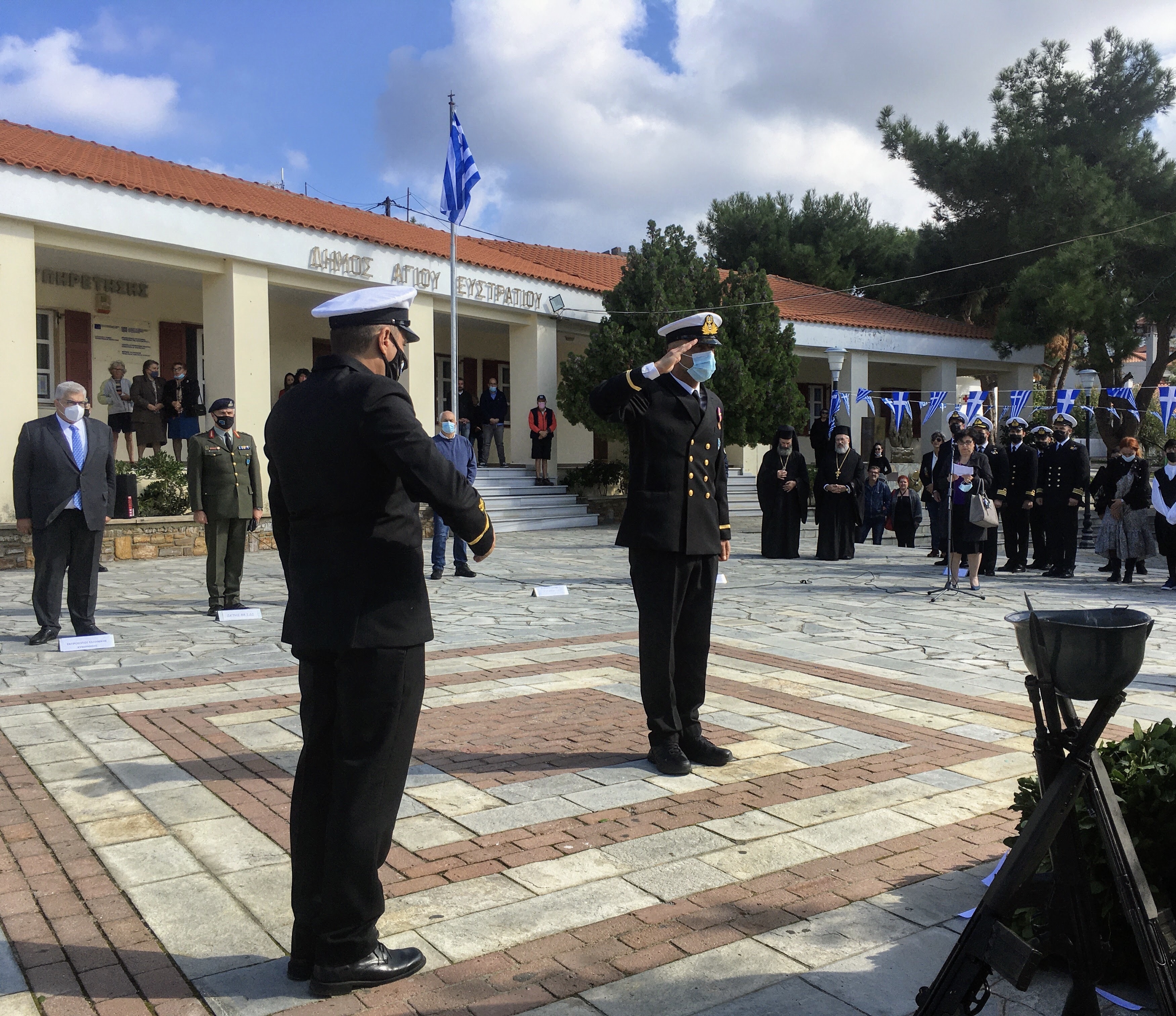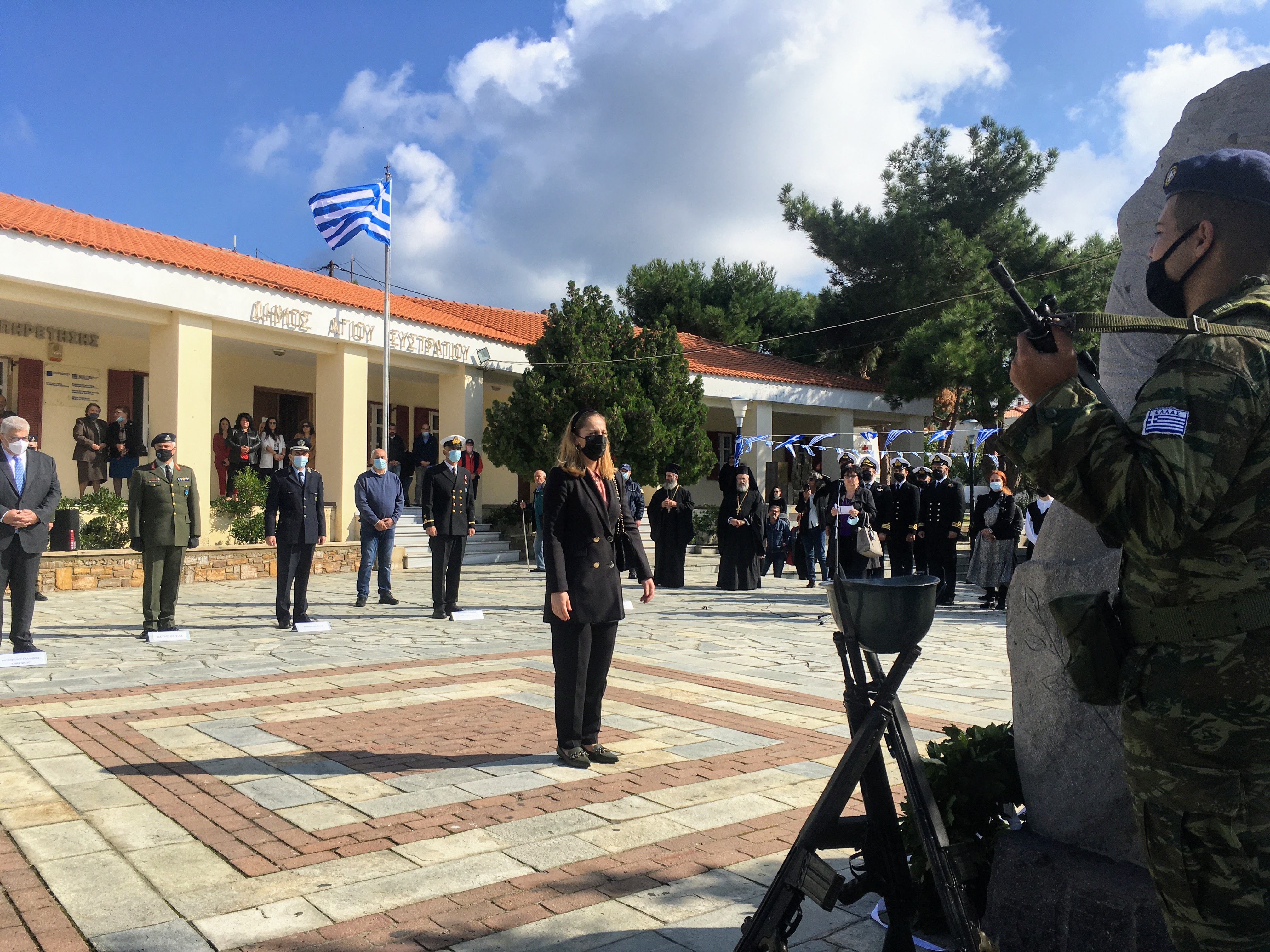 Τον Πανηγυρικό λόγο εκφώνησε η διευθύντρια του Γυμνασίου Λυκειακών τάξεων Αγίου Ευστρατίου κυρία Άννα Παπανικολάου.