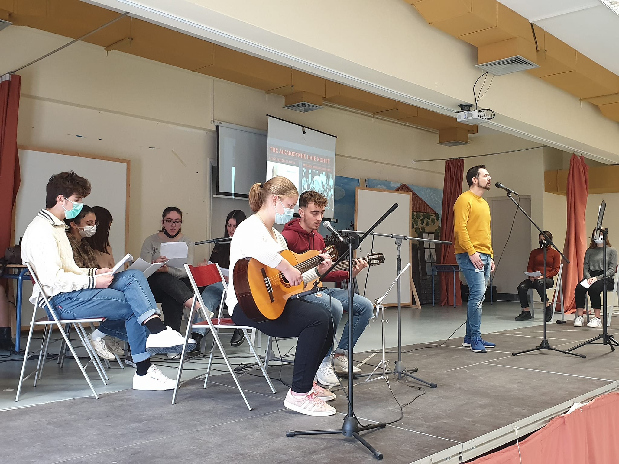 Στο δεύτερο μέρος, η σχολική γιορτή για την επέτειο του Πολυτεχνείου με τη συμμετοχή μαθητών και μαθητριών μας διοργανώθηκε από τον εκπαιδευτικό του σχολείου μας, κ. Ιωάννη Αδαμόπουλο, σε συνεργασία με την εκπαιδευτικό μας κ. Μαρία Λούκου. Στις κιθάρες ο Χάρης Αγιοστρατίτης και η Ανδριάνα Κωνστάντιου. Αφηγήτριες οι μαθήτριες Αλεξάνδρα Ανίτσου και Ευαγγελία Δεληγεώργη. Τη χορωδία αποτελούσαν οι: Μάριος Φίκαρης, Χριστίνα Παππά, Νικολέττα Δήμου, Παυλίνα Άντον και Βιβή Σουσαλή.