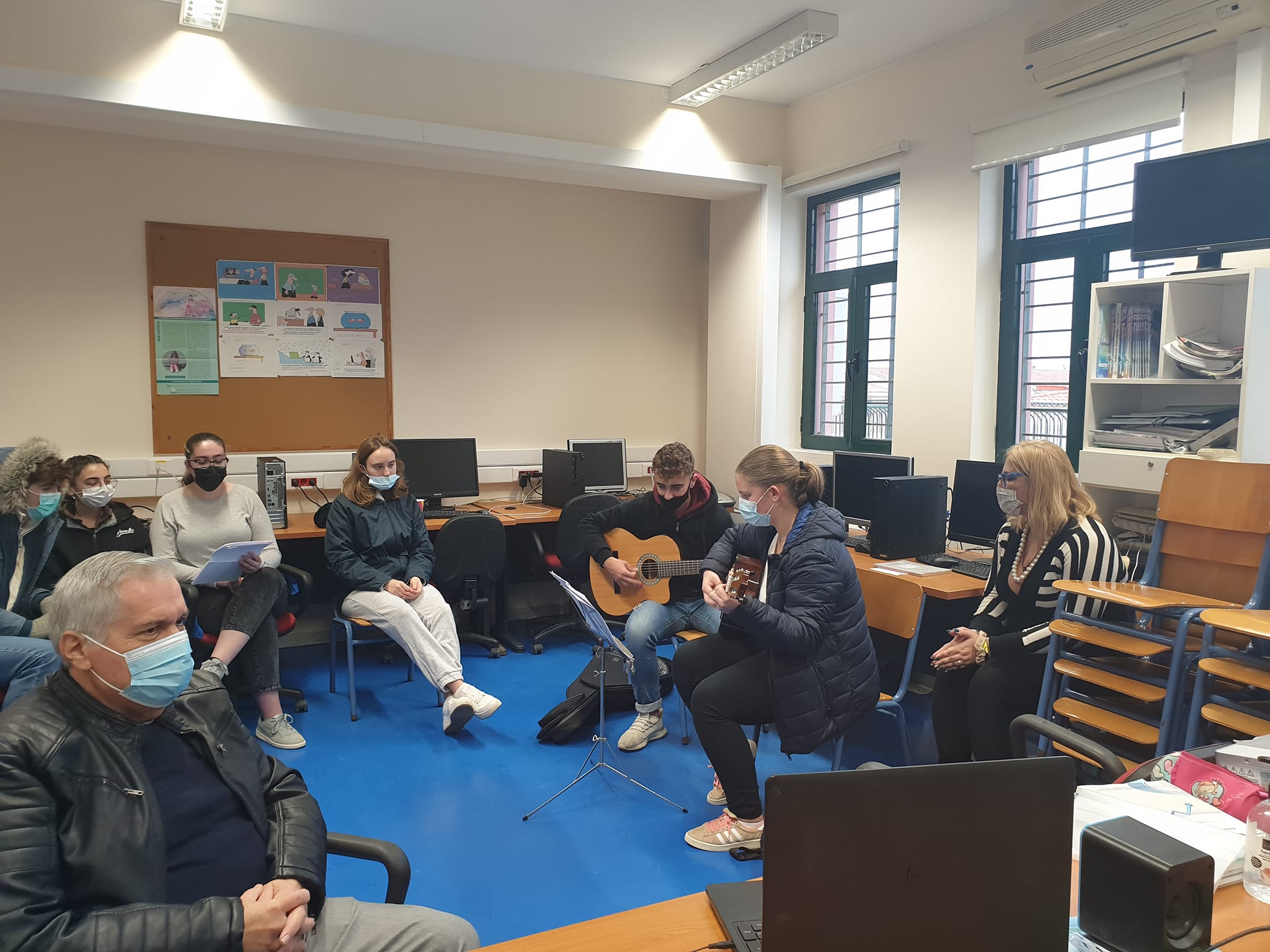 Παρευρέθηκαν στη συνάντηση η κ. Χριστίνα Δεσποτέρη, αντιπρόεδρος του Lemnos Gallipoli Commemorative Committee, η εκπαιδευτικός κ. Zoe Alexiades με τους μαθητές και τις μαθήτριες του σχολείου, ο διευθυντής του σχολείου μας, κ. Στυλιανός Καραγιάννης, με τις εκπαιδευτικούς κ. Μελίνα Γραμματικοπούλου και κ. Θεοδώρα Λυμπέρη, με τους μαθητές και τις μαθήτριες. Την συνάντηση συνόδευσαν μουσικά οι μαθητές και μαθήτριες μας, στις κιθάρες ο Χάρης Αγιοστρατίτης και η Ανδριάνα Κωνστάντιου.