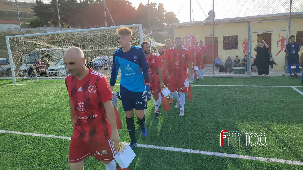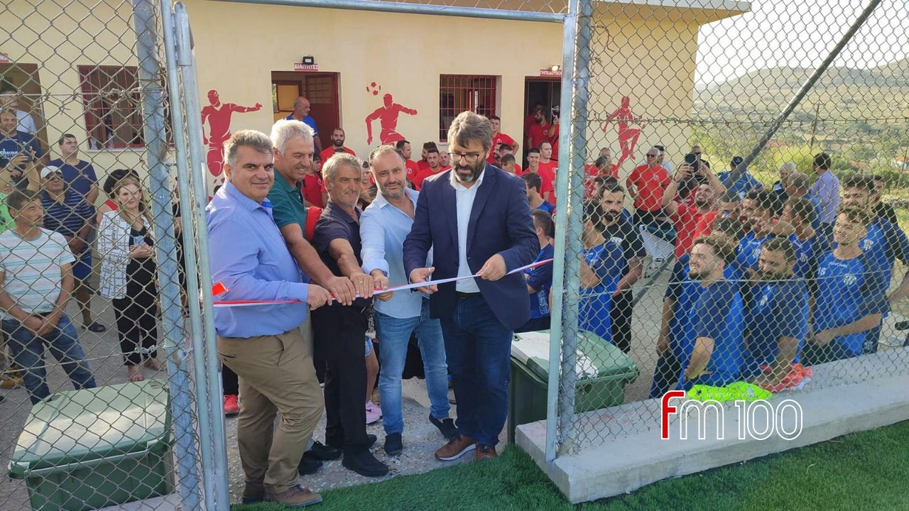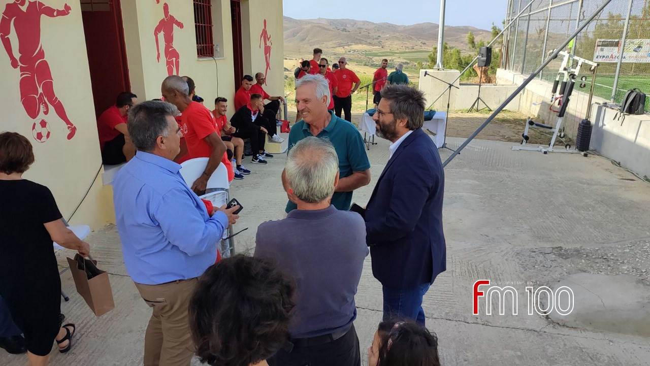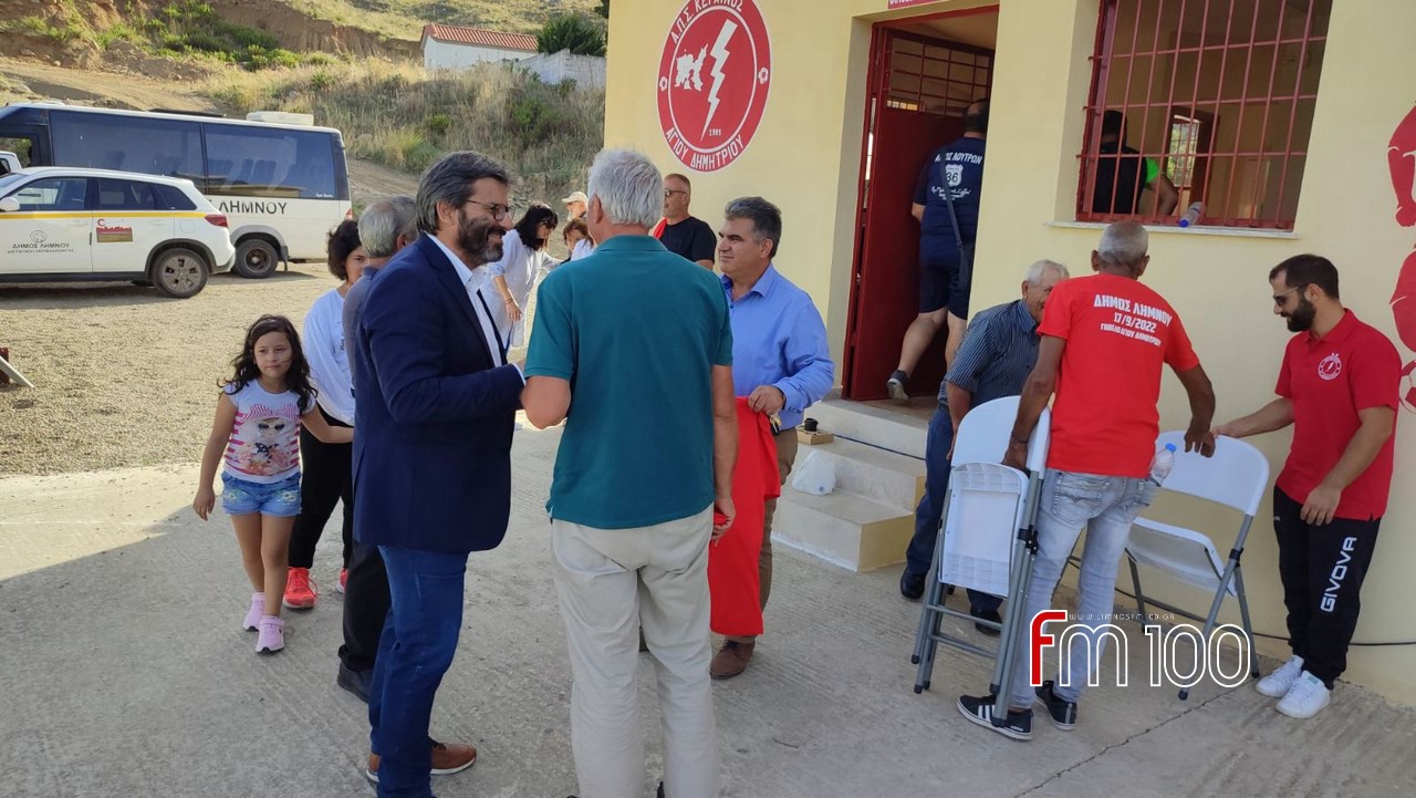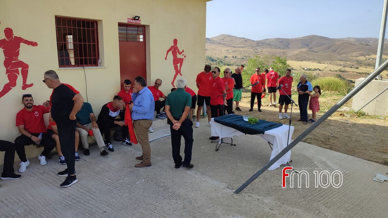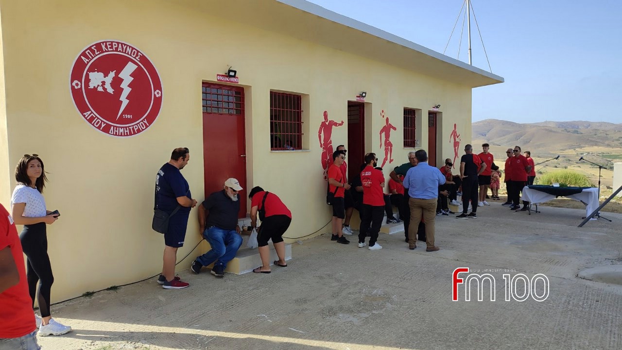 Η εκδήλωση των εγκαινίων συνεχίστηκε με ανταλλαγή δώρων μεταξύ του Δημάρχου και του Προέδρου του «Αετού Λουτρών» κ. Νίκου Σπανού, ενώ ακολούθησαν η κοπή της κορδέλας και ο φιλικός αγώνας Κεραυνού Αγ. Δημητρίου – Αετού Λουτρών, όπου το σκορ ήταν 1-5 υπέρ της ομάδας της Λέσβου.