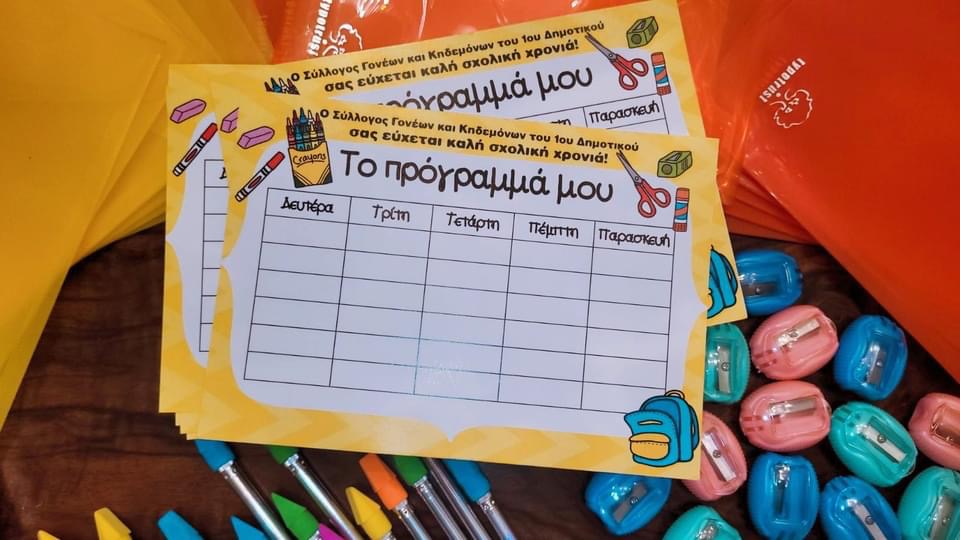 «Για το καλωσόρισμα των μαθητών του σχολείου μας πίσω στα θρανία, ο Σύλλογός μας χάρισε σε κάθε παιδί ένα εβδομαδιαίο πρόγραμμα για την οργάνωση της νέας χρονιάς που έφτασε!