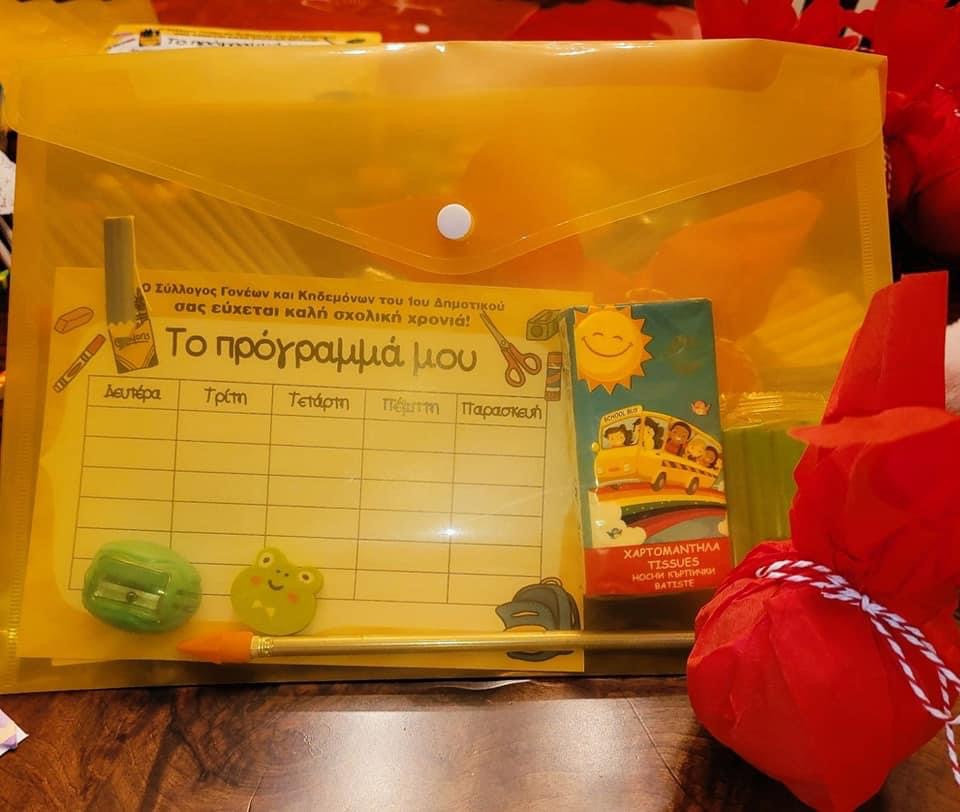 Ιδιαίτερα για τους μαθητές της πρώτης δημοτικού ετοιμάσαμε ένα φάκελο με όλα τα απαραίτητα για το σχολείο και ένα μήλο για να τονίσουμε τη σημασία της σωστής διατροφής που δίνει δύναμη σε σώμα και πνεύμα!