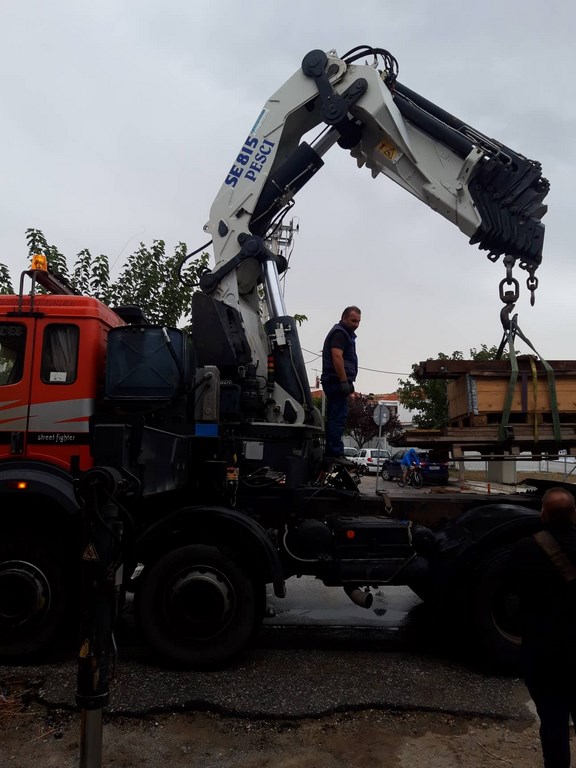 Λίγο μετά τις 9 το πρωί, ένας γερανός και ένας τράκτορας μαζί με επικαθήμενο βρέθηκαν στη Λεωφόρο Δημοκρατίας και ξεκίνησε η διαδικασία μεταφοράς του στο κτήριο που θα τον φιλοξενήσει.