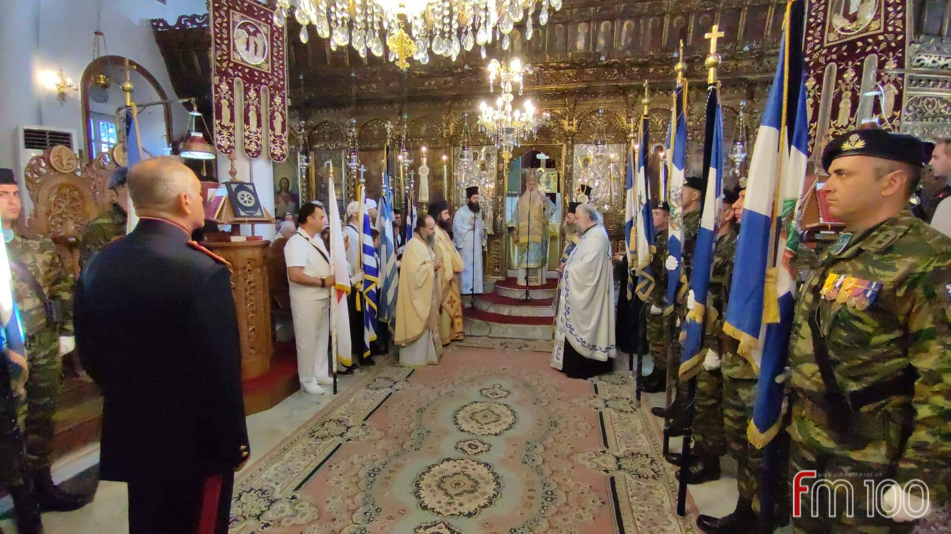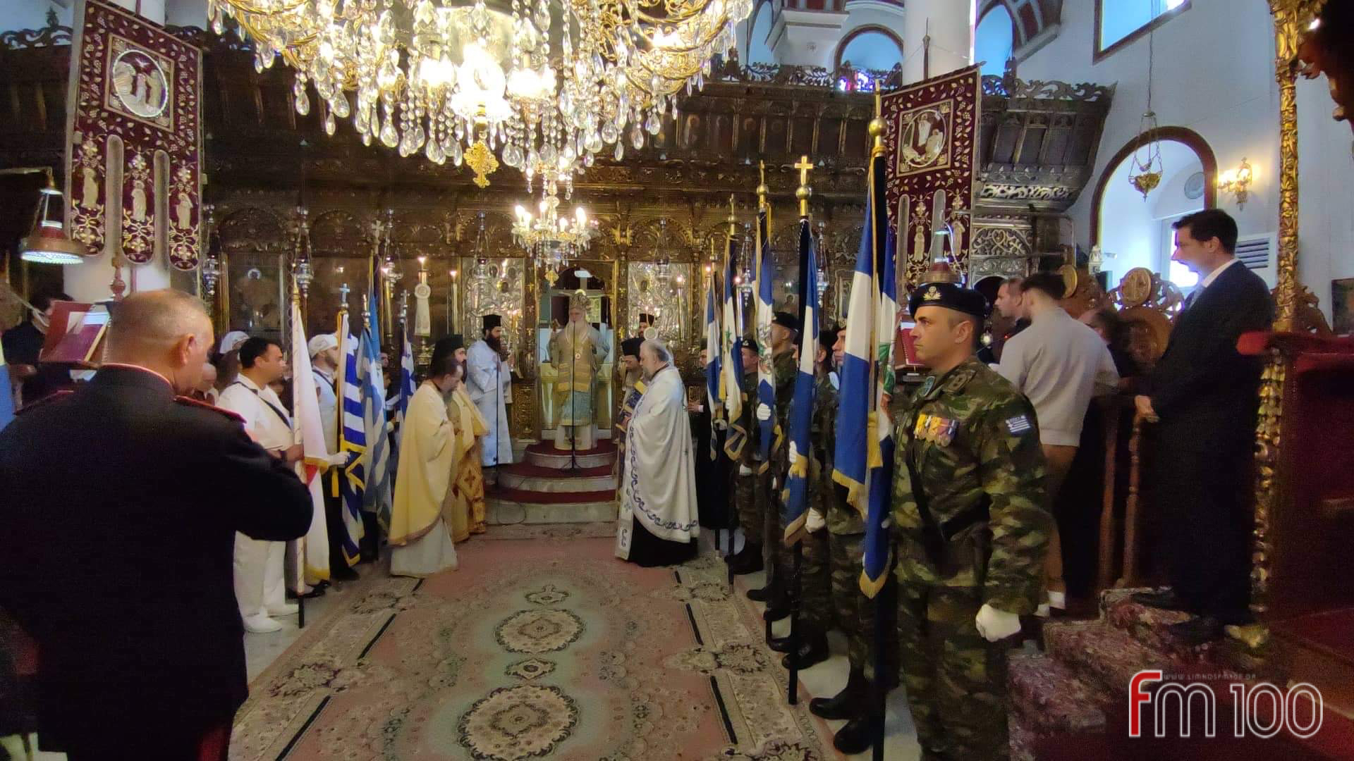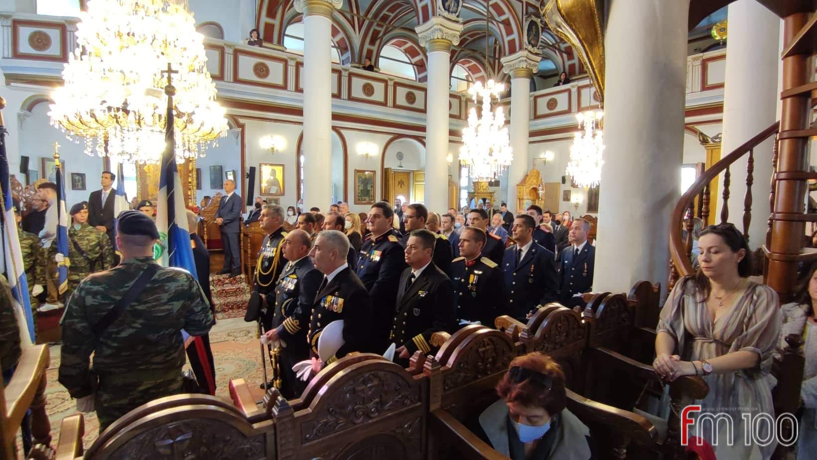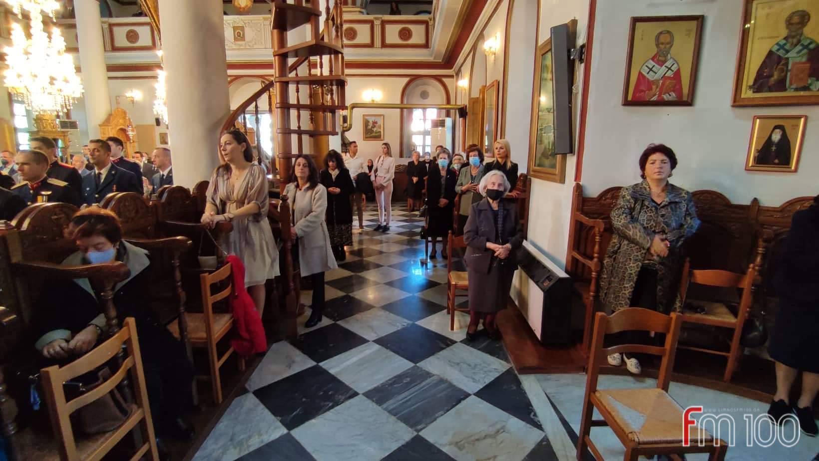 Στο τέλος της δοξολογίας παιάνισε ο εθνικός ύμνος, προκαλώντας ρίγη συγκίνησης ενώ κατά τη διάρκεια της δοξολογίας επιβλητική ήταν και η στιγμή όταν ένα μαχητικό αεροσκάφος έσκισε τους αιθέρες, πετώντας πάνω από την πόλη.