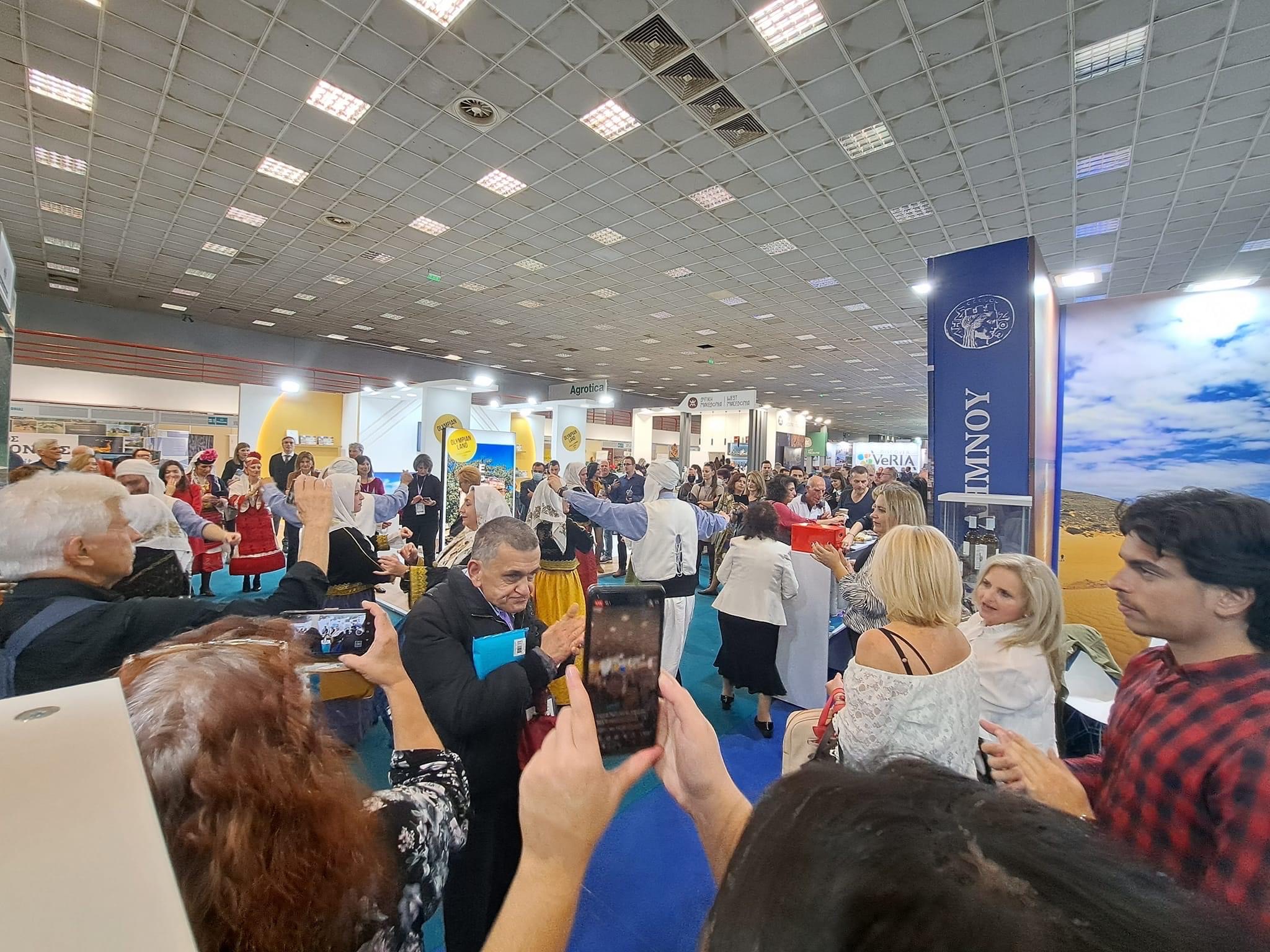 Εντωμεταξύ, σήμερα, έφτασε στο χώρο της έκθεσης και ο Δήμαρχος Λήμνου Δημήτρης Μαρινάκης, ενώ λίγο νωρίτερα, ξεχωριστό τόνο στην έκθεση, έδωσε το χορευτικό των Λημνιών της Θεσσαλονίκης, το οποίο καθήλωσε τα βλέμματα των περαστικών, με τους χορούς της Λήμνου και με τους ήχους από τα τραγούδια του αείμνηστου Νάσου Κοτσιναδέλλη.
