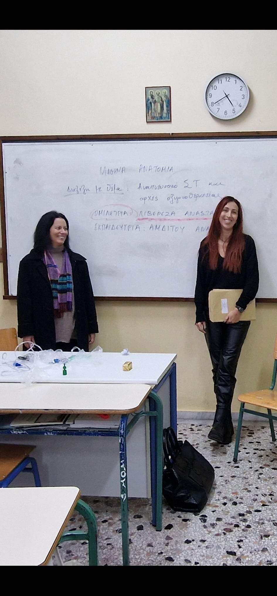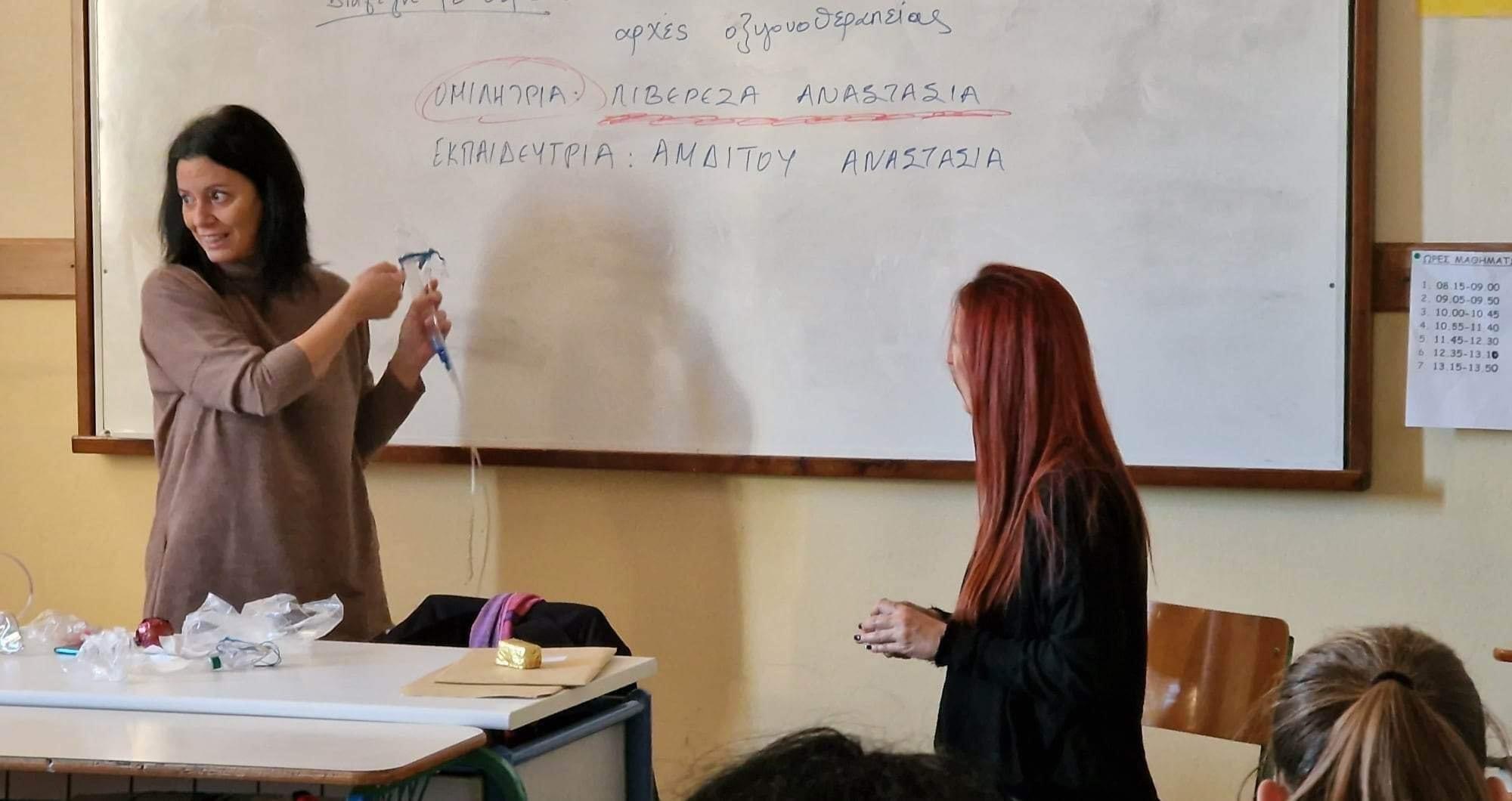 Η κα Λιβέρεζα μίλησε στους σπουδαστές του Δ.ΙΕΚ για τη σημαντικότητα του αναπνευστικού Συστήματος και για τα είδη της αναπνευστικής ανεπάρκειας. Επίσης τους εξήγησε τις βασικές αρχές που διέπουν την οξυγονοθεραπεία και τους επέστησε την προσοχή στα πιθανά λάθη που γίνονται κατά τη χορήγησή της και τους κινδύνους που αυτά επιφέρουν.