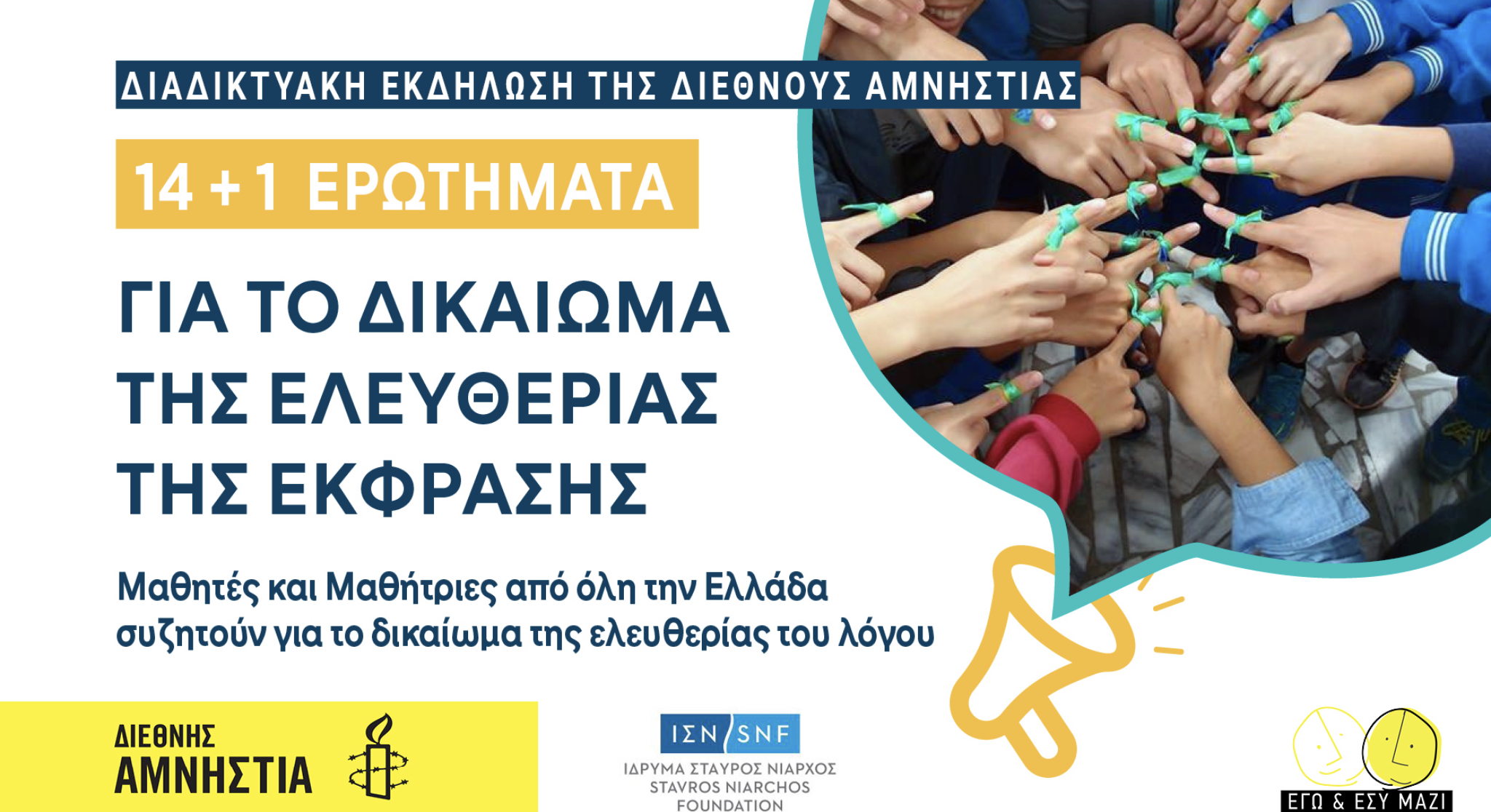 Το εκπαιδευτικό πρόγραμμα "Εγώ κι Εσύ Μαζί: Εκπαίδευση στα Ανθρώπινα Δικαιώματα" χρηματοδοτείται με την ευγενική δωρεά του Ιδρύματος Σταύρος Νιάρχος.