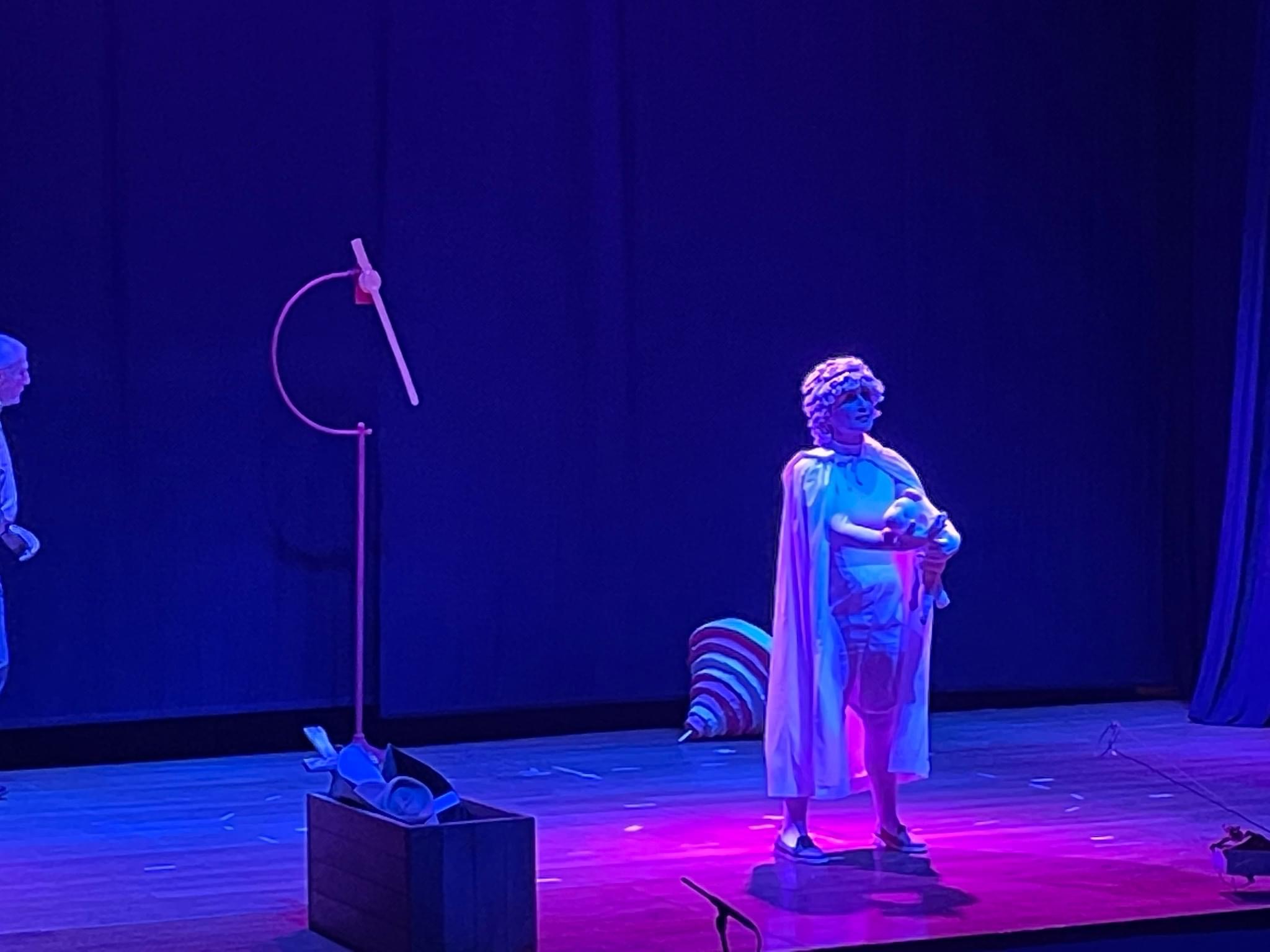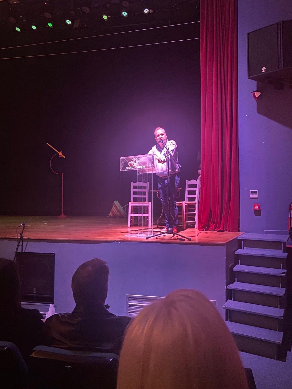 Η εκδήλωση ολοκληρώθηκε με μία θαυμάσια θεατρική παράσταση, τη δραματοποιημένη βιογραφία του Χρήστου Μπουλώτη «Γιατί και πώς», σε κείμενα της Δέσποινας Παπαδοπούλου, σκηνοθεσία του Γιώργου Καριακλή, πρωτότυπη μουσική του Δημήτρη Μαυράκη και συμμετοχή στα κρουστά του σχήματος «Μπαρτάλια». Σε ένα έργο που έσφυζε από δημιουργική φαντασία, σαν αυτή που μεταφέρει στα βιβλία του ο ίδιος ο συγγραφέας, αλλά και όμορφες μελωδίες, δημιουργοί, ηθοποιοί, μουσικοί και ερμηνευτές μας παρουσίασαν τη ζωή του από τα χρόνια της παιδικής του ηλικίας, όταν ανακάλυπτε τον κόσμο στον μαδυτινό γιαλό, μέχρι τη στιγμή της καταξίωσης και της δημιουργίας, σε μια παράσταση όπου το κοινό είδε επίσης να ζωντανεύουν μπροστά στα μάτια του οι ιστορίες που τόσο απλόχερα μας χάρισε ο Χρήστος Μπουλώτης.