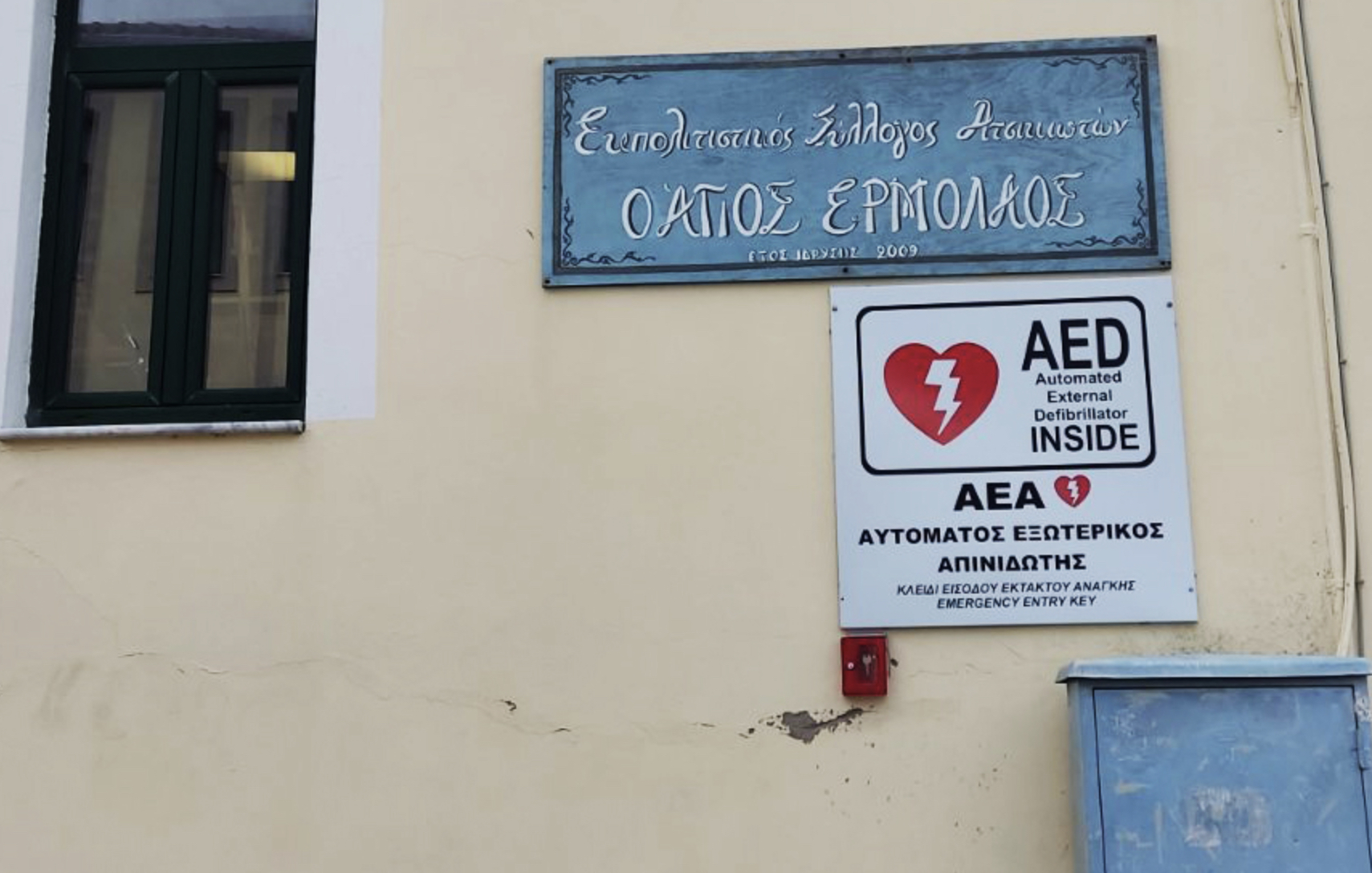 Ο απινιδωτής έχει τοποθετηθεί στον εσωτερικό χώρο του κτιρίου στο οποίο στεγάζεται ο Πολιτιστικός Σύλλογος Ατσικής και εξωτερικά υπάρχει ειδική σήμανση.
