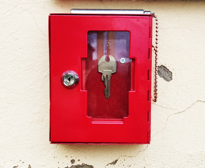 Ακριβώς κάτω από τη σήμανση, υπάρχει το κουτί εκτάκτου ανάγκης στο οποίο βρίσκεται το κλειδί για την πρόσβαση στον χώρο.