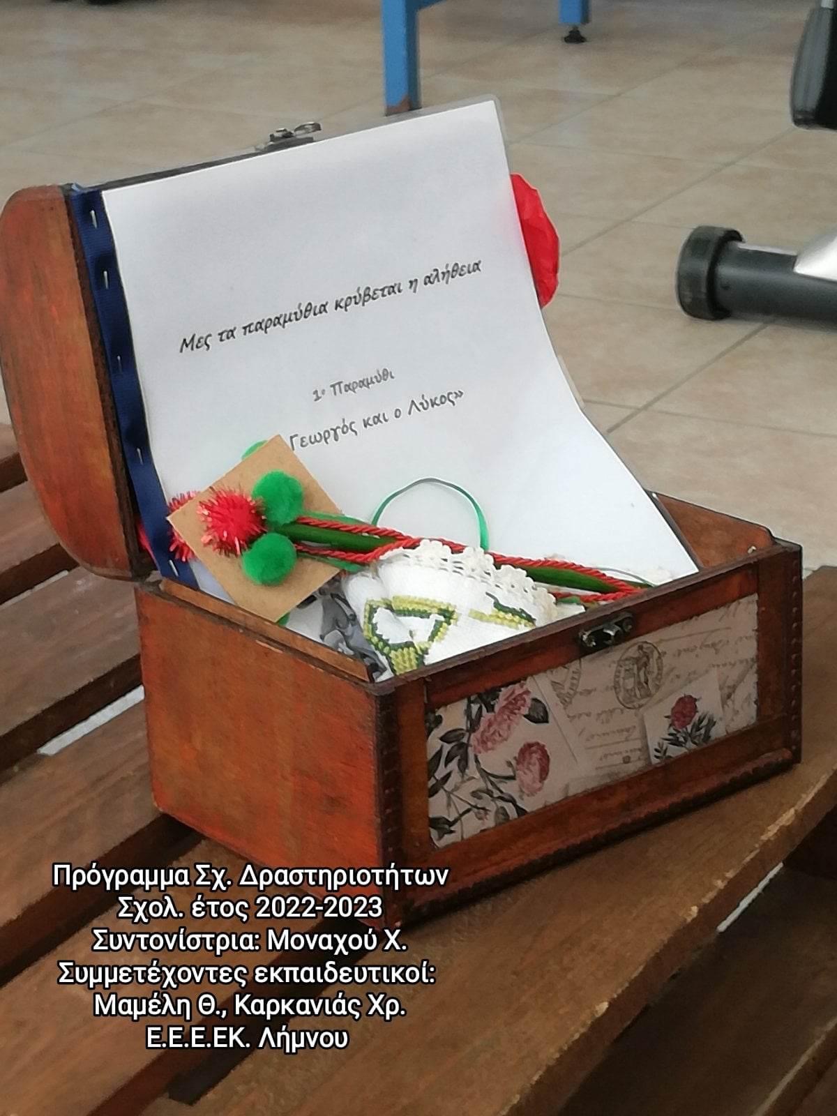 Στην συνέχεια ακολούθησε η αφήγηση του 1ου Παραμυθιού με τίτλο «Ο Γεωργός και ο Λύκος». Τα παιδιά συζήτησαν για την ιστορία και με βάση τους ήρωες της ιστορίας, αναλύθηκαν τα βασικά συναισθήματα και πως αυτά εκφράζονται.