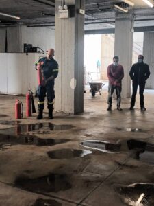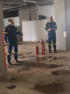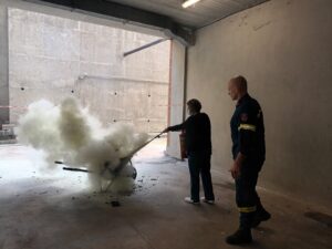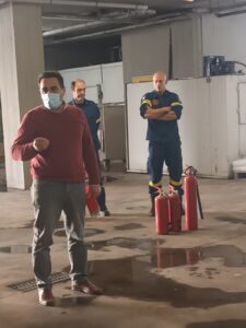 Στη συνέχεια έγινε ενημέρωση από στελέχη της Πυροσβεστικής Υπηρεσίας Λήμνου για τις ενέργειες σε περίπτωση πυρκαγιάς και τη χρήση των πυροσβεστικών μέσων. Ακολούθησε επίδειξη χρήσης πυροσβεστήρων, καθώς και πρακτική εξάσκηση του προσωπικού.
