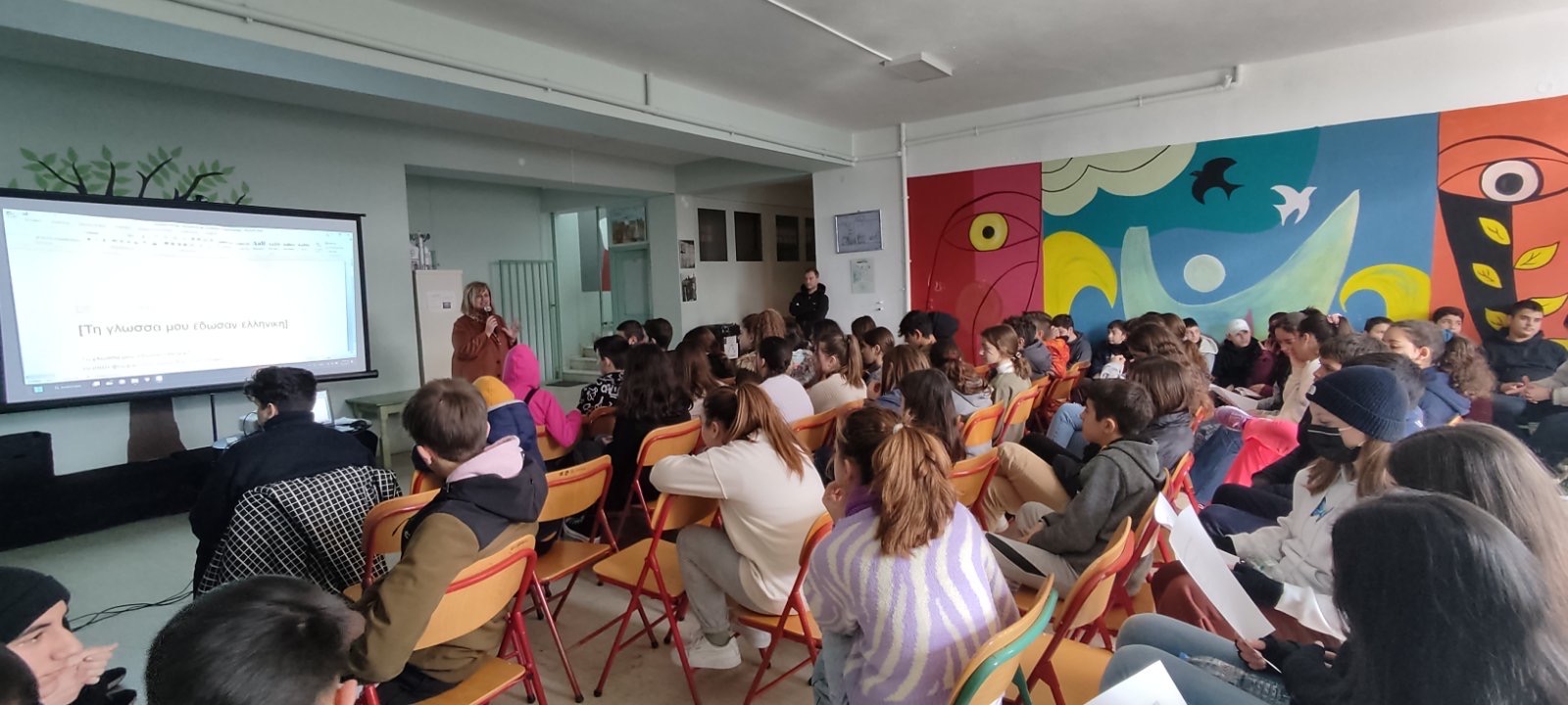 Το Γυμνάσιο Μούδρου δε θα μπορούσε να αφήσει αυτή τη σημαντική μέρα χωρίς ιδιαίτερη τιμή και μνεία. Οι μαθητές μας απήγγειλαν το ποίημα του Νομπελίστα μας Οδυσσέα Ελύτη "Τη γλώσσα μου έδωσαν ελληνική" 'Αξιον εστί, Τα πάθη, Ψαλμός Β΄. Άκουσαν το υπέροχο τραγούδι του Παντελή Θαλασσινού "Γλωσσολαλιά" και διαγωνιστήκαμε στην ορθογραφία και στην ετυμολογία, ιδιαίτερα απαιτητικών, ομολογουμένως, λέξεων.