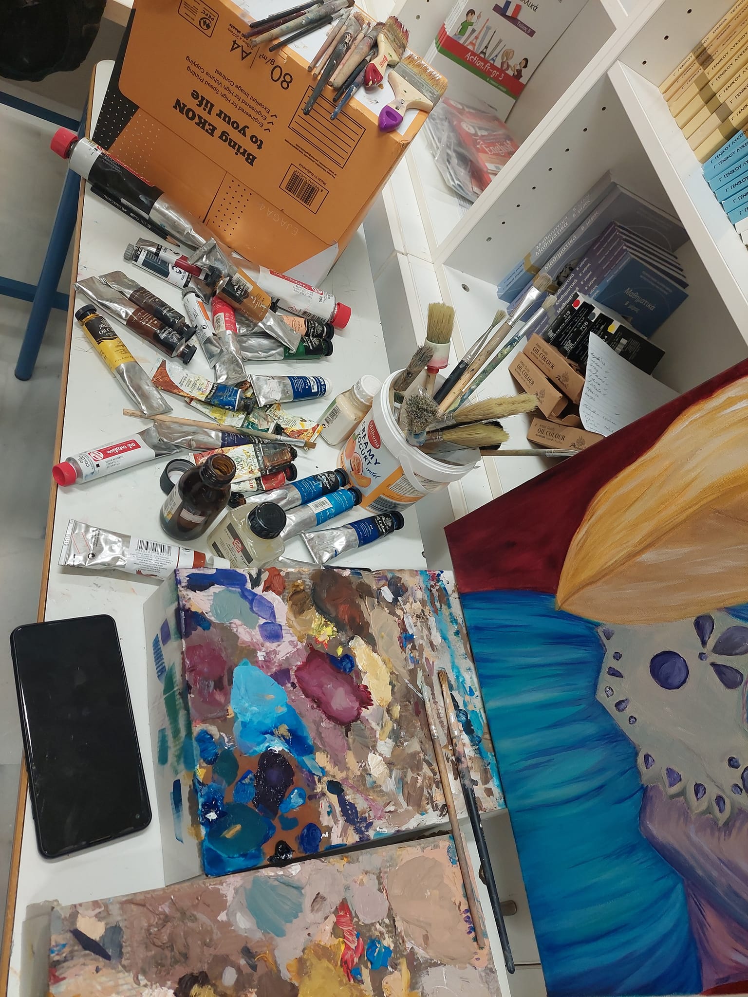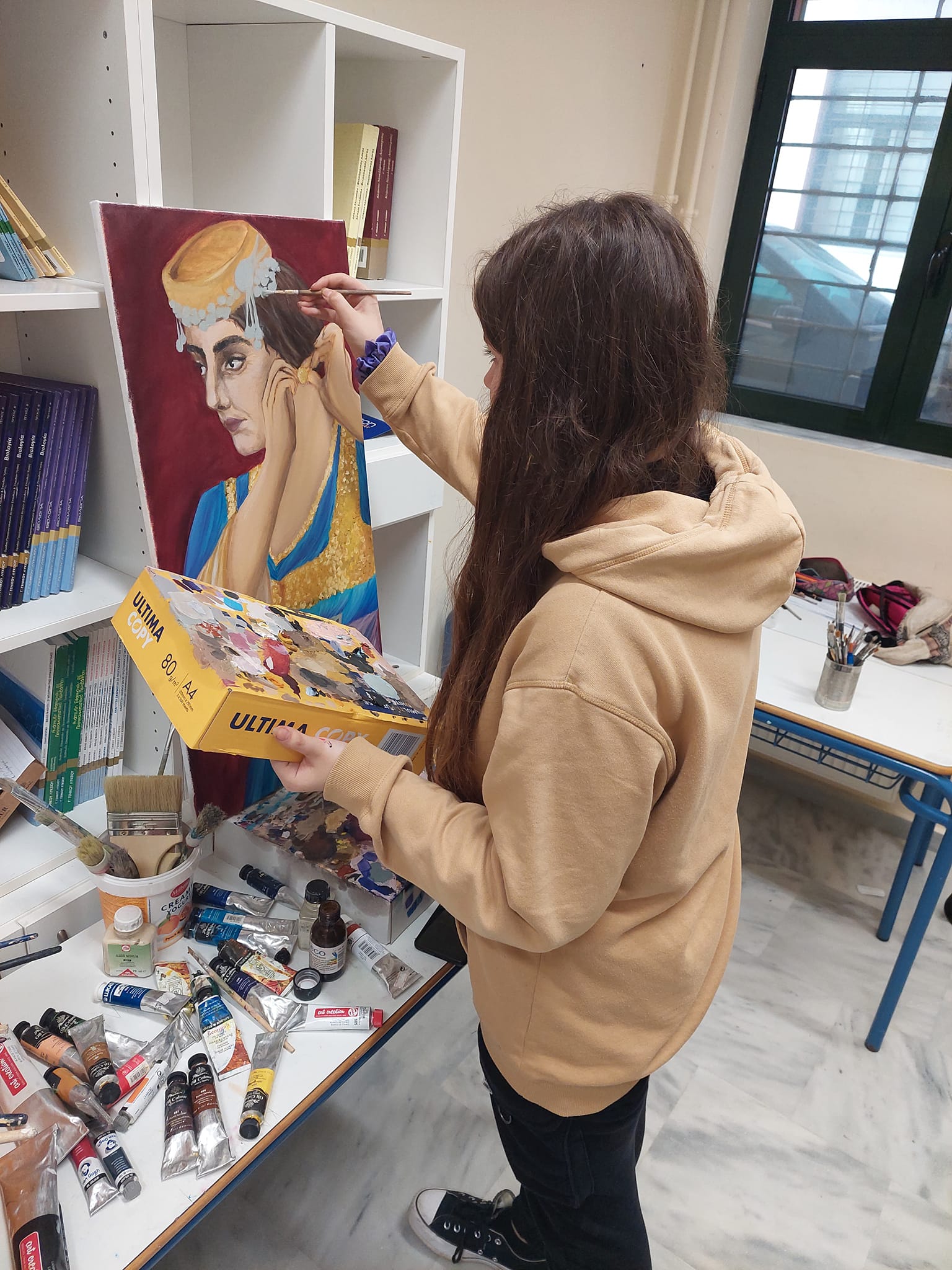 Στο πλαίσιο υλοποίησης του σχεδίου, η μαθήτρια της Γ' Λυκείου Ανθρωπιστικών σπουδών, Πηνελόπη Κωνσταντίνα Τραμουντάνη αποτυπώνει σε έργα ζωγραφικής κειμήλια και πίνακες από την έκθεση "Μικρά Ασία" του Μουσείου Μπενάκη. Το δημιουργικό εργαστήριο βρίσκεται στο σχολείο.