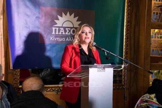 Έκανε αναλυτική αναφορά στα όσα πρόσφερε στον τόπο το ΠΑΣΟΚ με έμφαση στην υγεία, αλλά και στην ίδρυση του Πανεπιστημίου Αιγαίου – το οποίο τα τελευταία χρόνι όπως σχολίασε φθίνει σε φοιτητές – στο Υπουργείο Αιγαίου, ενώ καυτηρίασε την εποχή των κρίσεων που ζούμε -υγειονομική, ενεργειακή, οικονομική- λέγοντας ότι «μάθαμε να ζούμε στο φόβο». Επεσήμανε τα προβλήματα της κοινωνίας με τις συντάξεις που περικόπτονται, την οικονομία που φθίνει, τα καταστήματα που κλείνουν και τις τεράστιες ελλείψεις στο χώρο της υγείας.