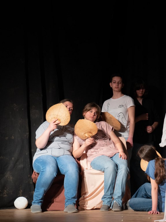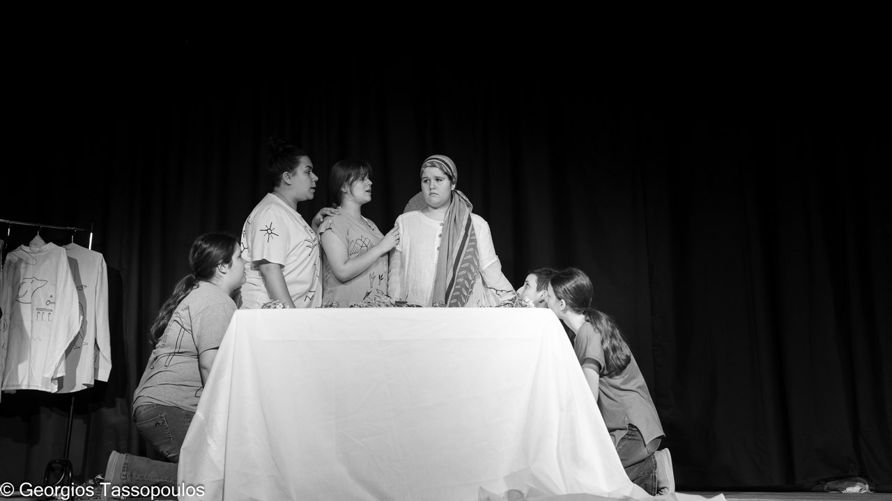 Τα μέλη της θεατρικής μας ομάδας: Χάρις Μεργιά, Αντώνης Μιχάκης, Ελένη Καλογίαννη (ΕΠΑΛ Μύρινας), Ελευθερία Λιγδαρά (ΓΕΛ Μούδρου), Γιοβάνα Μήλε, Ασπασία Χαβιά, Αδαμαντία Κονταρή.