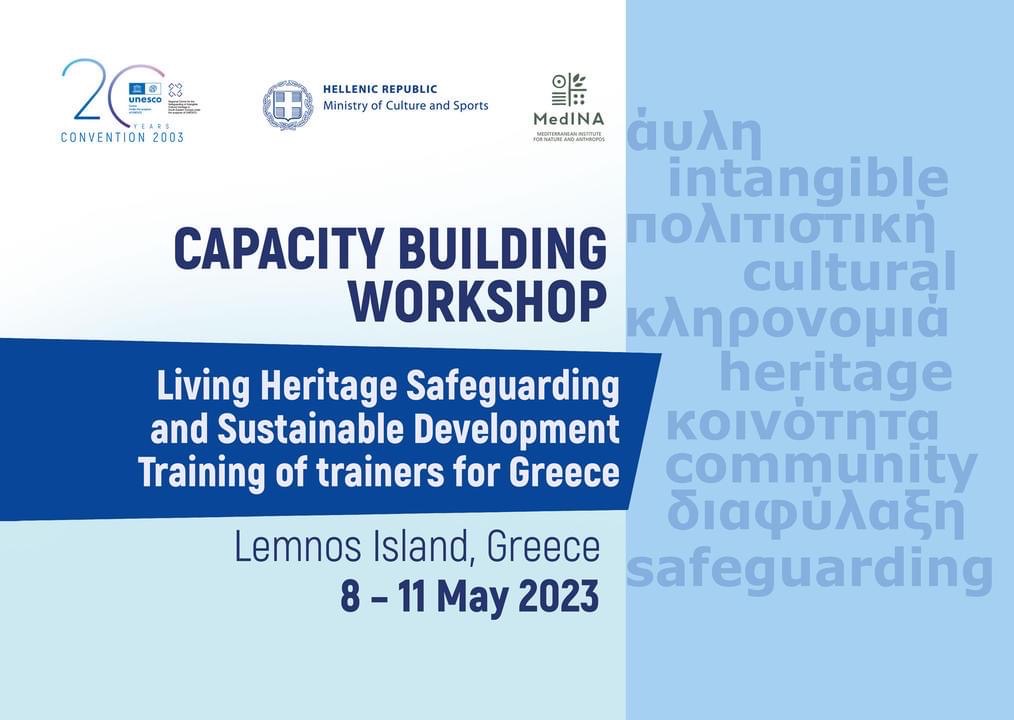 Οι εκπαιδεύτριες (facilitators) της UNESCO Harriet Deacon & Βenedetta Ubertazzi και οι δεκαεπτά έμπειροι/ες εκπαιδευόμενοι/ες, (εκπρόσωποι πολιτιστικών φορέων, ακαδημαϊκοί, πολιτιστικοί διαχειριστές, αρχιτέκτονες, εκπαιδευτικοί) μοιράστηκαν ιδέες και προσεγγίσεις που συνδυάζουν τη διαφύλαξη της άυλης πολιτιστικής κληρονομιάς με τη βιώσιμη ανάπτυξη, ενώ συζήτησαν τις προκλήσεις που προκύπτουν από αυτή τη σύνδεση, καθώς και πιθανούς τρόπους αντιμετώπισής τους. Κεντρική θέση στις συζητήσεις είχε επίσης η ανάπτυξη δράσεων στο πλαίσιο του πολιτιστικού τουρισμού και η προώθηση προϊόντων προερχόμενων από διάφορες εκφάνσεις της άυλης πολιτιστικής κληρονομιάς πάντα με γνώμονα τη διαφύλαξή της. Αρκετός χρόνος συζήτησης αφιερώθηκε ακόμη στη διαδικασία απόκτησης και στη σημασία των γεωγραφικών ενδείξεων προέλευσης των προϊόντων, καθώς και στο θέμα της προστασίας των πνευματικών δικαιωμάτων σχετικά με την άυλη πολιτιστική κληρονομιά. Τέλος, οι συμμετέχοντες/ουσες, στο πλαίσιο άσκησης, συζήτησαν και κατέγραψαν σειρά προτάσεων προς το MedINA σχετικά με την αποτελεσματικότερη αξιοποίηση της άυλης πολιτιστικής κληρονομιάς στη βιώσιμη ανάπτυξη της Λήμνου.