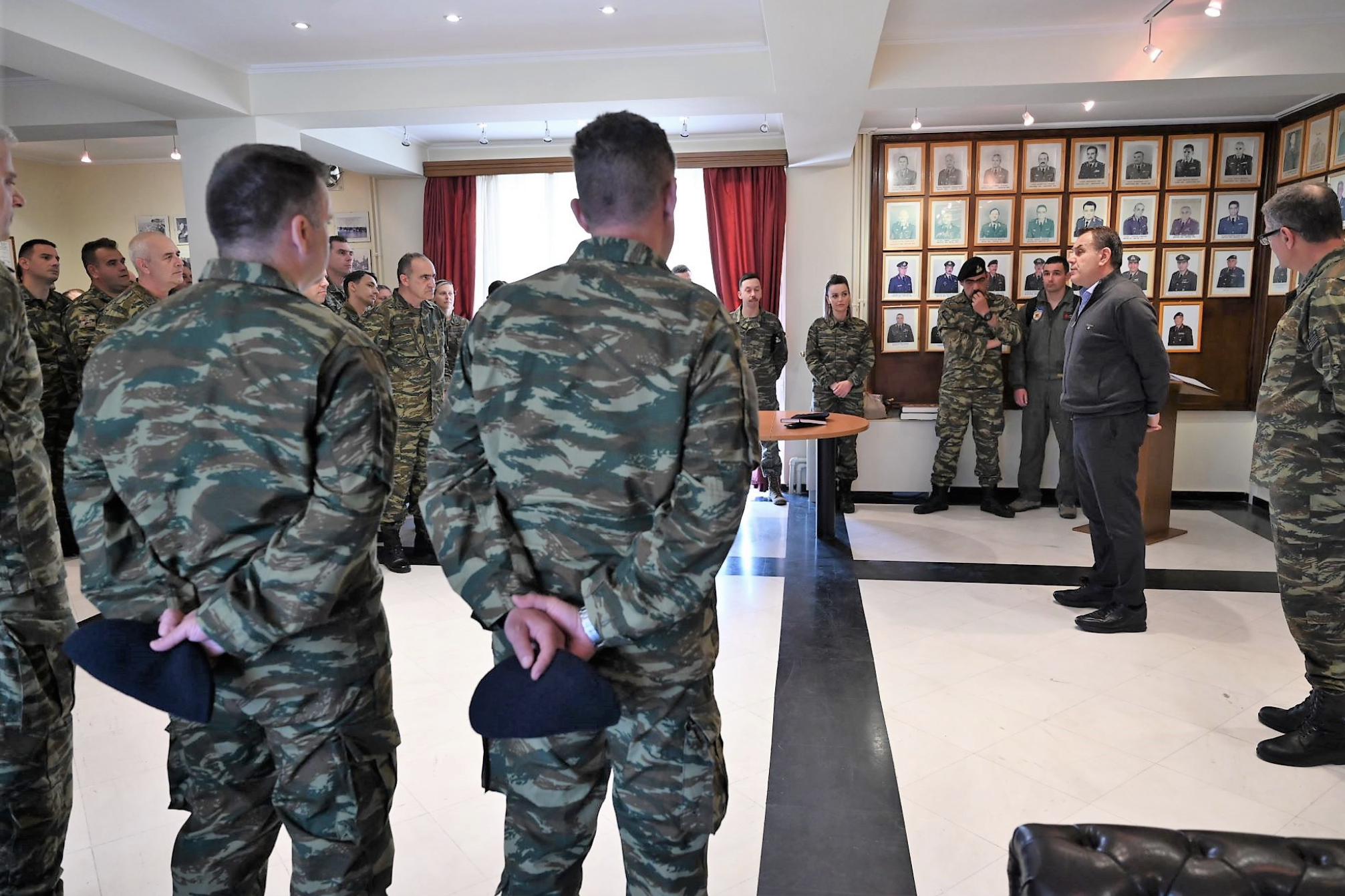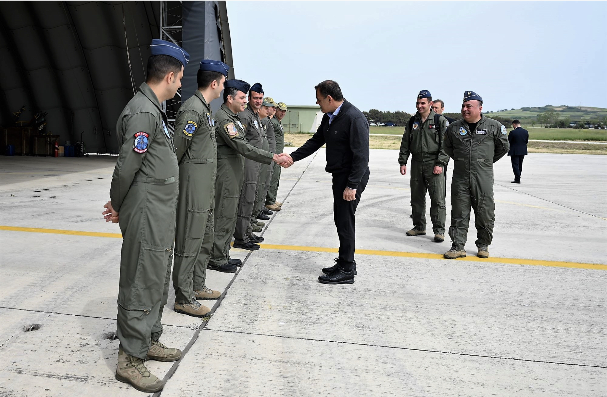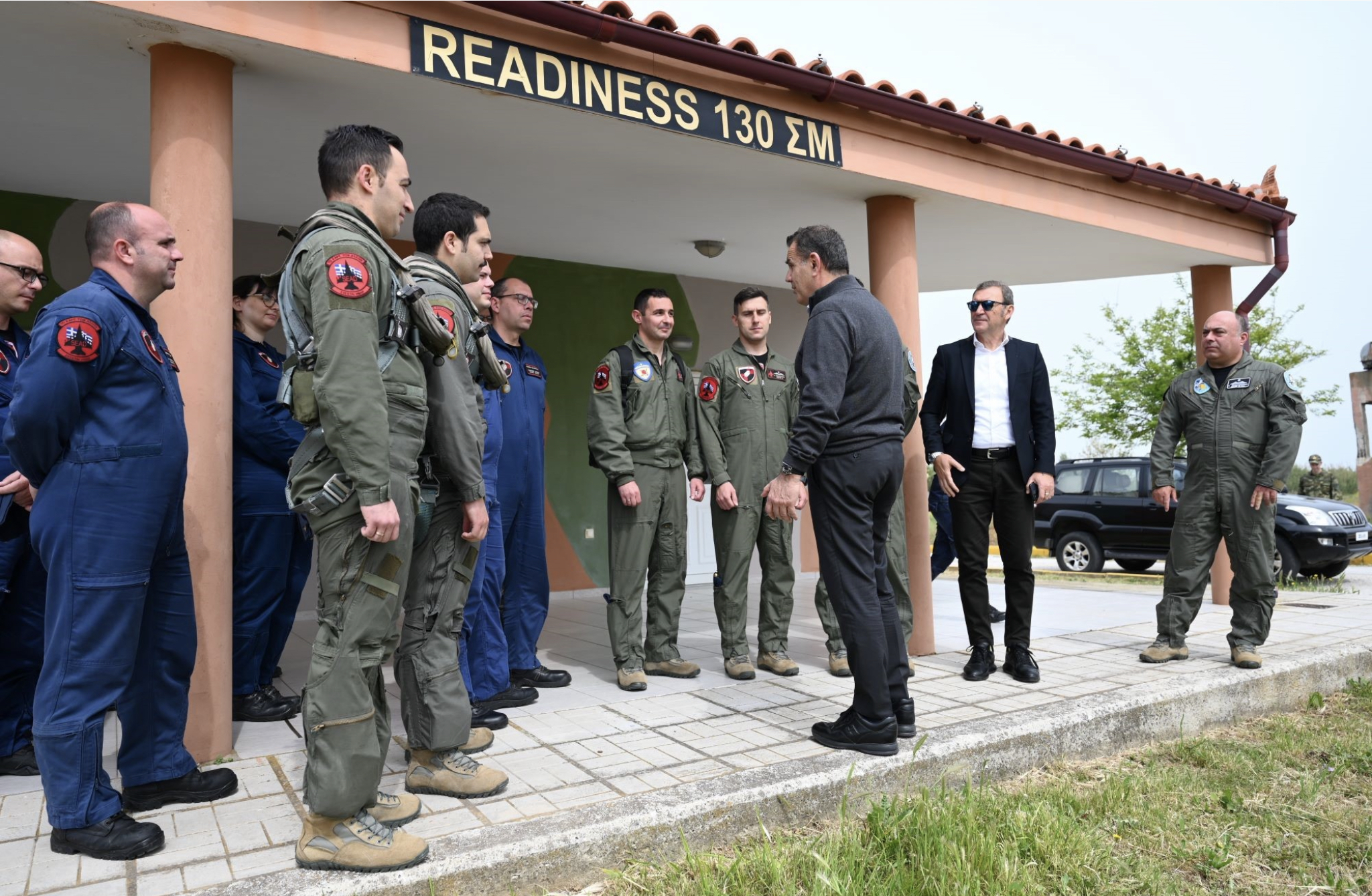 Ο Υπουργός μετέβη στην 130 Σμηναρχία Μάχης (130 ΣΜ) όπου συναντήθηκε με τα στελέχη που υπηρετούν στις εγκαταστάσεις των Κλιμακίων Επιφυλακής (Readiness) μαχητικών αεροσκαφών και ελικοπτέρων της Πολεμικής Αεροπορίας, και ενημερώθηκε για επιχειρησιακά θέματα.