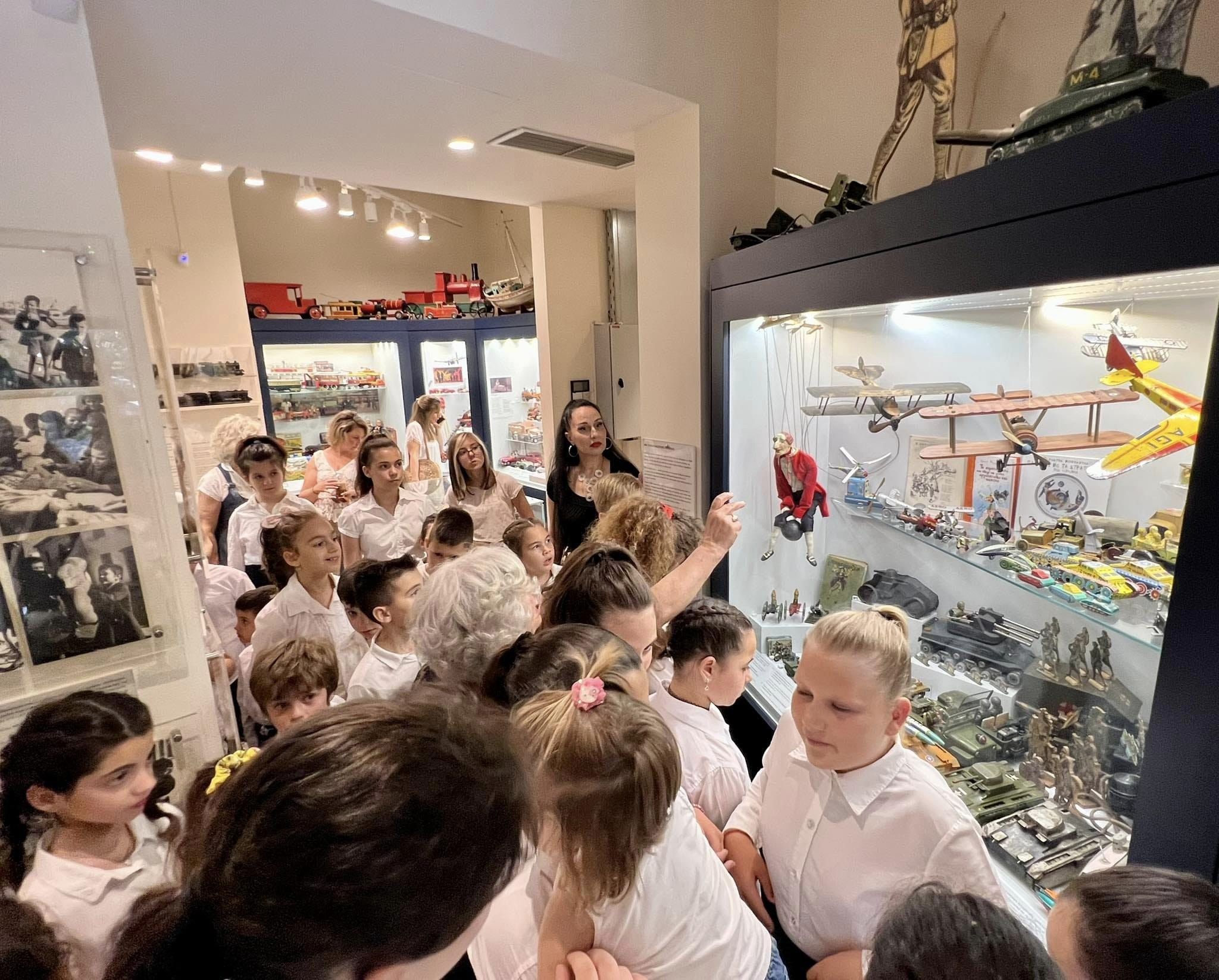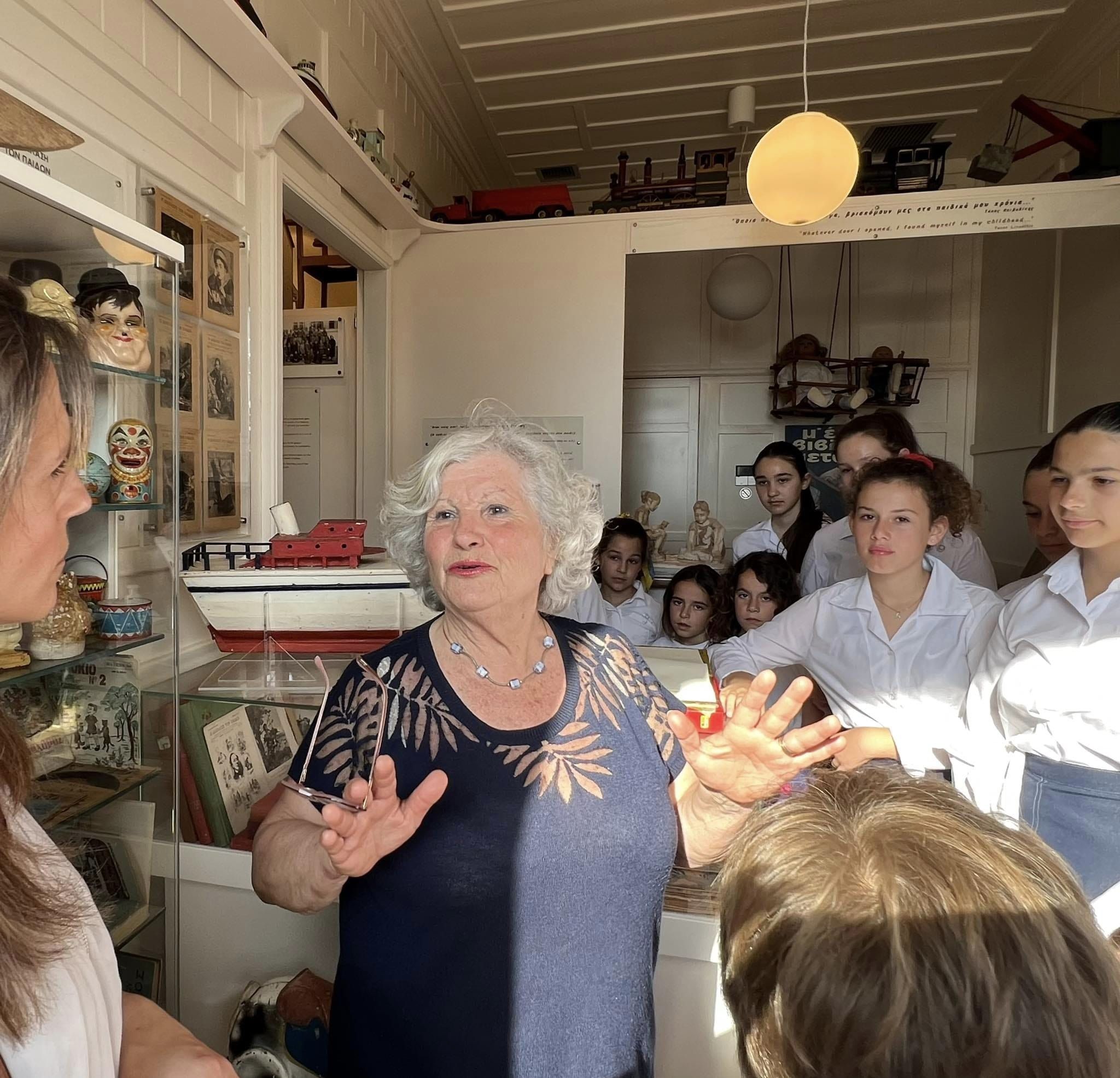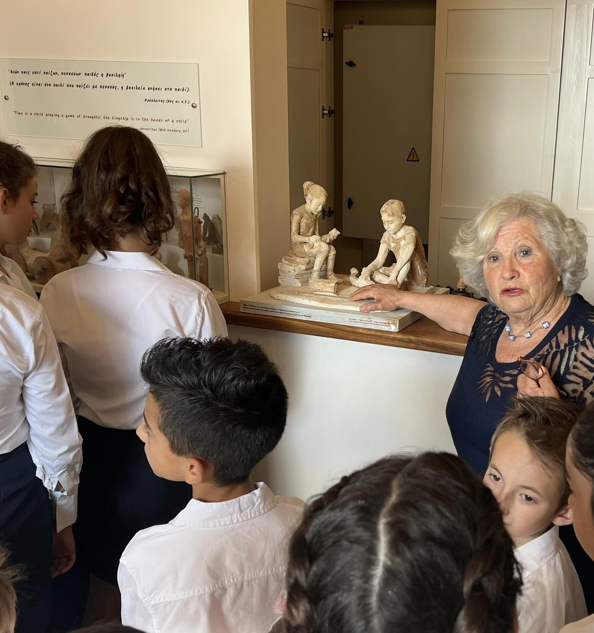 Η κα Νίτσα Δώρα, μέλος του συλλόγου ξενάγησε τα παιδιά στο μαγικό κόσμο της συλλογής και με παραδειγματική αφοσίωση αναφέρθηκε τόσο στην ιστορία των πολύτιμων παιχνιδιών και βιβλίων ,όσο και στο πρόσωπο του μεγάλου δωρητή.