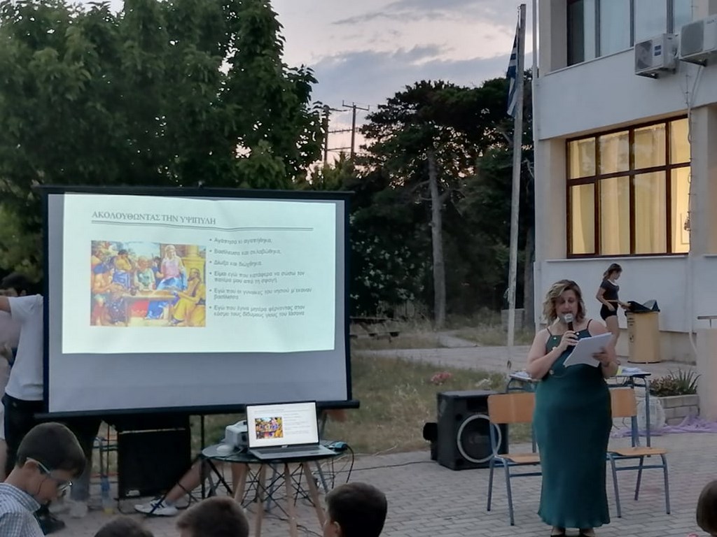 Οι εκπαιδευτικοί και οι μαθητές και οι μαθήτριες παρουσίασαν τις δράσεις της χρονιάς που πέρασε, παρουσιάστηκε η ταινία μικρού μήκους "Μια παλιά φωτογραφία" με την οποία το σχολείο συμμετέχει στο 11ο Διανησιωτικό Φεστιβάλ Μαθητικών Ταινιών Βορείου και Νοτίου Αιγαίου CINEμάθεια, κυκλοφόρησε το 2ο τεύχος της εφημερίδας του σχολείου Μουδρινό Μαθητο...λόγιο, παρουσιάστηκαν τα εκπαιδευτικά προγράμματα "Πού κρύβεται η Υψιπύλη;", "¨Αυλη Πολιτιστική Κληρονομιά", "Εγώ κι Εσύ μαζί" και οι εκπαιδευτικοί του σχολείου παρουσίασαν τη δουλειά τους, τους ομίλους που λειτούργησαν, τη βιωματική μάθηση που εφάρμοσαν σε πολλές περιπτώσεις. Ακολούθησαν οι βραβεύσεις των μαθητών στο Διαγωνισμό Φυσικής "Αριστοτέλης".