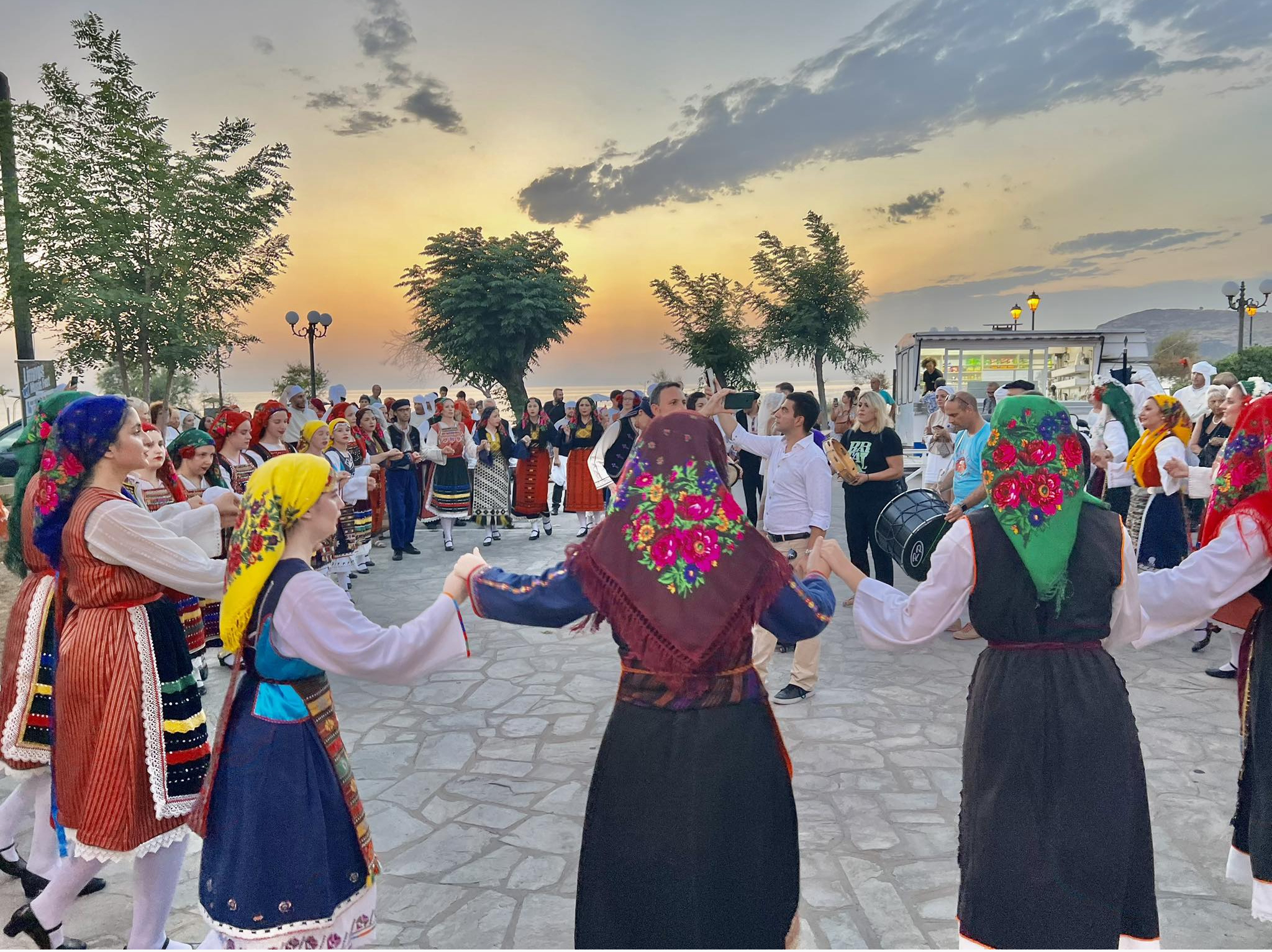 Το καθιερωμένο γεύμα φιλοξενίας το οποίο προηγήθηκε των εκδηλώσεων και πραγματοποιήθηκε το Σάββατο 23 Ιουλίου 2023 στο εστιατόριο «ΠΛΑΤΑΝΟΣ» στην αγορά της Μύρινας εξελίχθηκε σε ένα πρωτοφανές γλέντι μεταξύ των χορευτών αλλά και των περαστικών επισκεπτών και ντόπιων που ενώθηκαν μαζί μας στον κύκλο του χορού και αποθανάτιζαν φωτογραφικά κάθε λεπτό από μοναδικές στιγμές με άρωμα παράδοσης. Εκεί είχαμε την ευκαιρία πέρα από την ανταλλαγή των δώρων, να γνωριστούμε καλύτερα, αλλά κυρίως να ανανεώσουμε το ραντεβού μας για την επόμενη χορευτική μας συνάντηση.