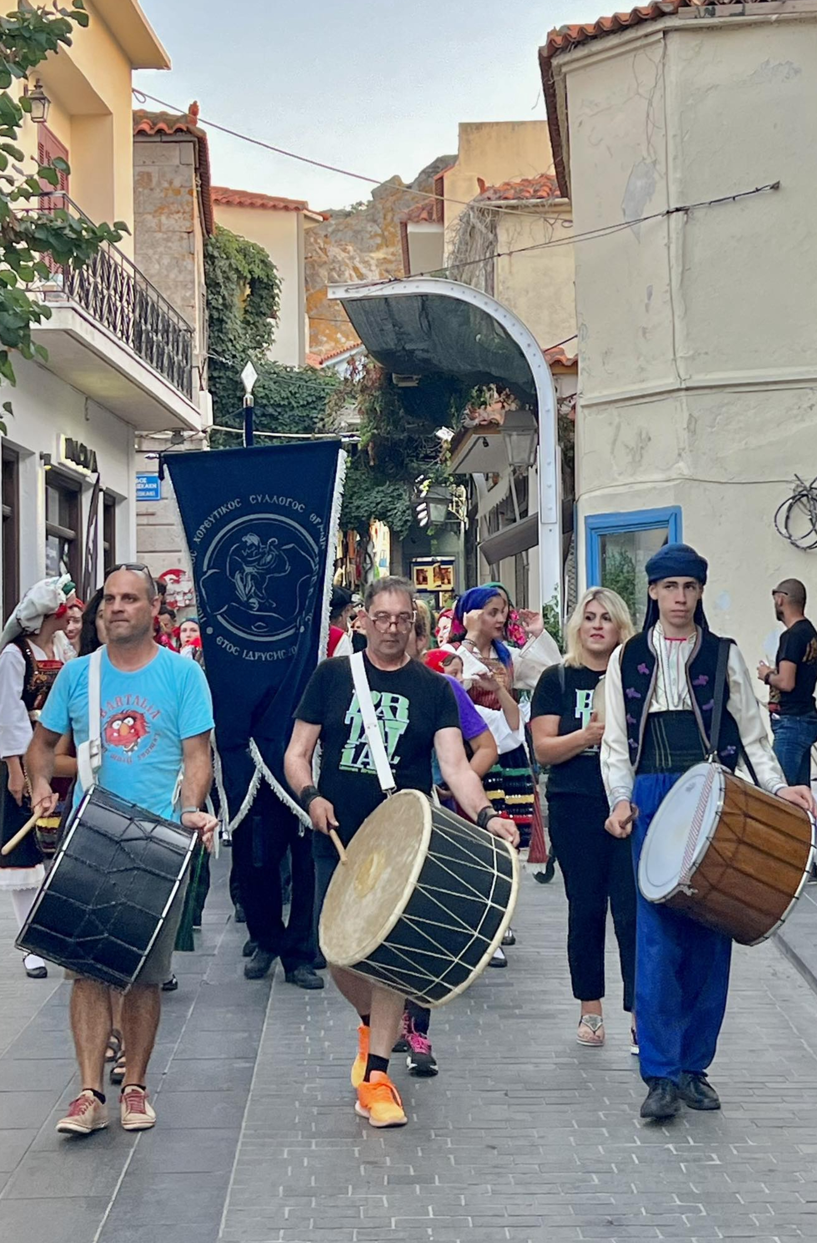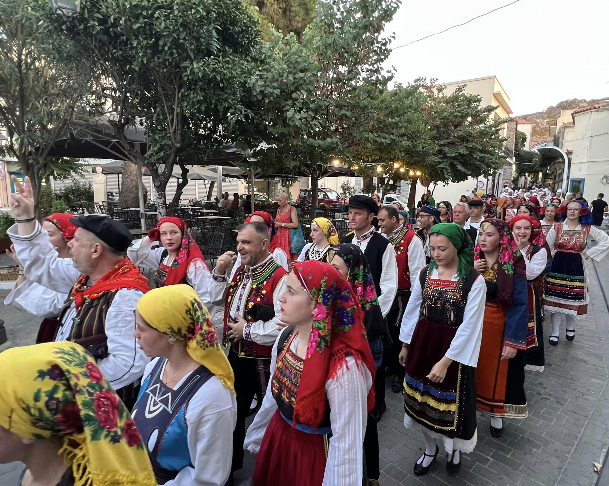 Η καθιερωμένη πλέον «παρέλαση» των χορευτικών τμημάτων από το λιμάνι προς το Γυμνάσιο , εξελίχθηκε σε γλέντι με στάσεις σε κεντρικά σημεία της πόλης ,όπου χορευτές και περαστικοί ενώθηκαν στον κύκλο του χορού.