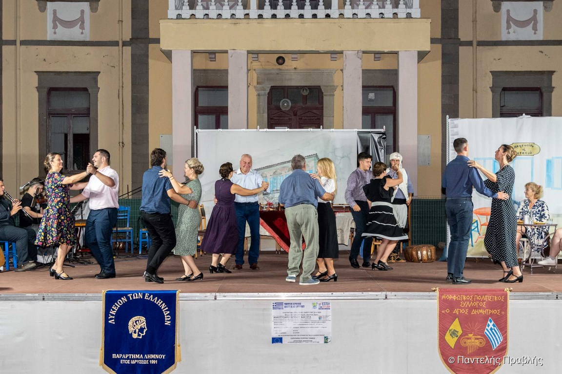Τις σκηνές πλαισίωσαν σκηνικά ζωγραφισμένα από την εικαστικό κ. Αφροδίτη Δεδέκα και χοροί από το Λύκειο των Ελληνίδων Λήμνου και τον Μορφωτικό Εκπολιτιστικό Σύλλογο “Ο Άγιος Δημήτριος”, υπό την καθοδήγηση των χοροδιδασκάλων κ. Βασίλη Μαγνήσαλη και κ. Νάσου Χαλκά αντίστοιχα.