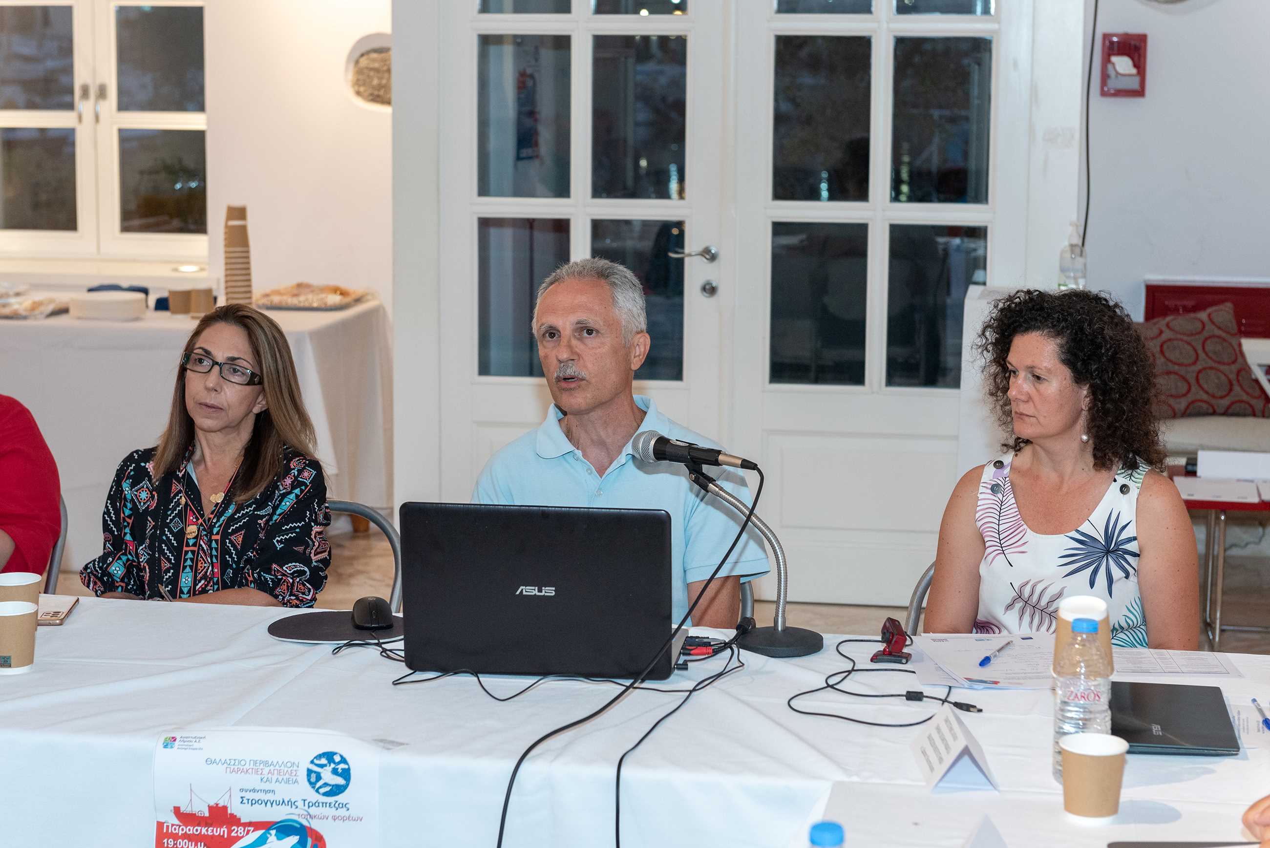 Τις συναντήσεις με τους επαγγελματίες αλιείς ακολούθησε συνάντηση στρογγυλής τράπεζας με τοπικούς φορείς, με θέμα «Προβλήματα και απειλές στο Παράκτιο και Θαλάσσιο Περιβάλλον», η οποία πραγματοποιήθηκε στις 28 Ιουλίου, στο χώρο Τέχνης Αποθήκη. Στόχος της συνάντησης, ήταν η ιεράρχηση των κινδύνων που αντιμετωπίζει το θαλάσσιο περιβάλλον και σχετίζονται με την αλιεία και τις παράκτιες περιοχές, καθώς και η δημιουργία στοχευμένων προτάσεων για την αντιμετώπιση τους.