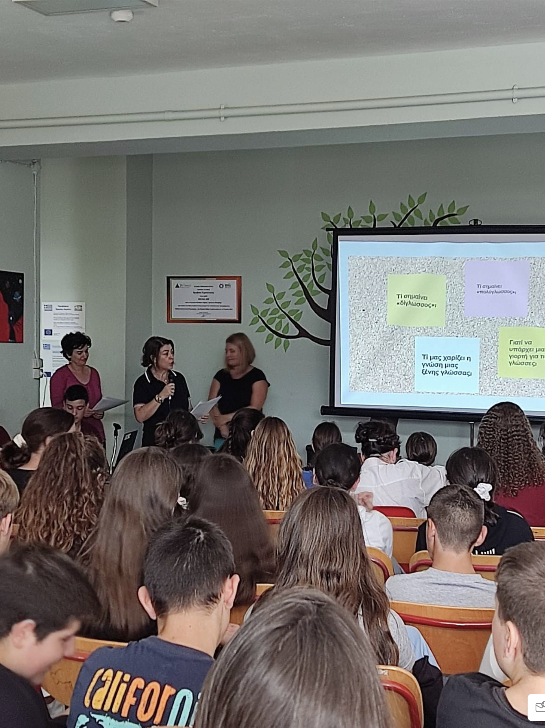 Μαθητές αλλά και καθηγητές πήρανε μέρος σε διαγλωσσικούς διαλόγους. Οι μαθητές παρουσίασαν την “πολυχρωμία” των ευρωπαϊκών γλωσσών μέσα από ποικιλία πληροφοριών για χώρες, γλώσσες και μνημεία της επιλογής τους, ενώ συμμετείχαν με ενθουσιασμό σε παιχνίδια και διαγωνισμούς.