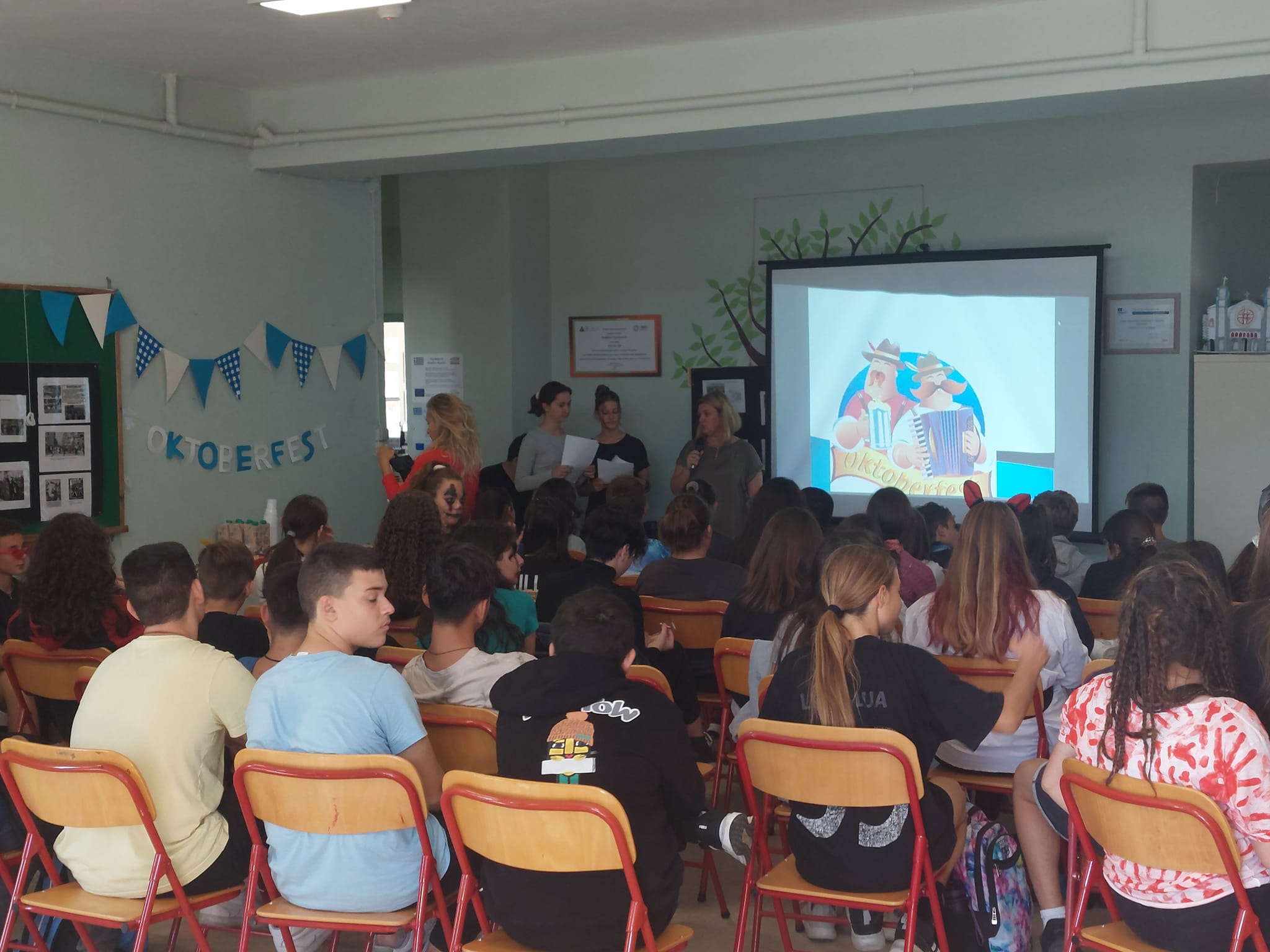 Παράλληλα, γιορτάσαμε το Oktoberfest (το μεγαλύτερο λαϊκό πανηγύρι παγκοσμίως που πραγματοποιείται στη Γερμανία) και το Halloween στο σχολείο. Μιλήσαμε για τα έθιμα, ακούσαμε τραγούδια, μιλήσαμε Γερμανικά και Αγγλικά, παίξαμε, διασκεδάσαμε και μοιραστήκαμε νοστιμότατα μεζεδάκια και χυμό μήλου!
